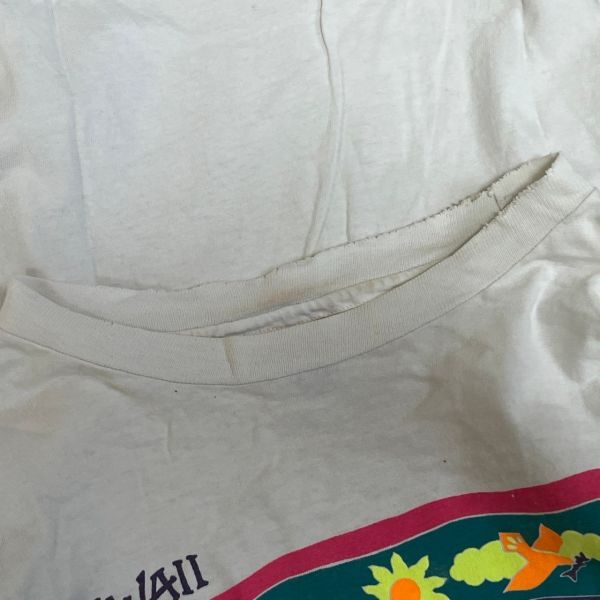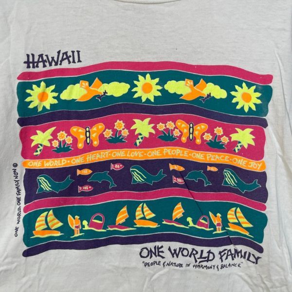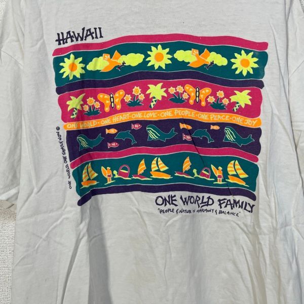 【ヘインズ】メキシコ製Tシャツ ビンテージ イルカ ハワイ 蝶々花柄白T49 | |