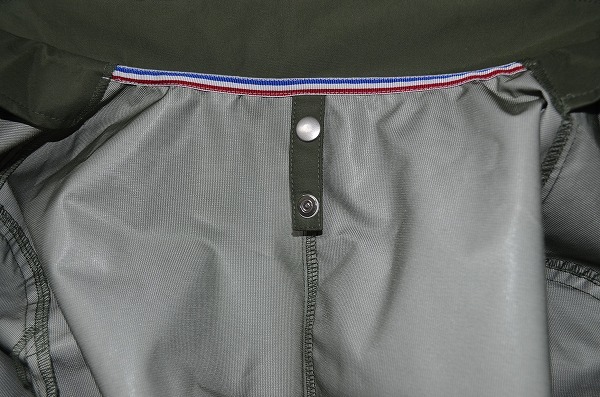 前開きはフラップカバー付きのボタン留め、風雨の侵入を防止します