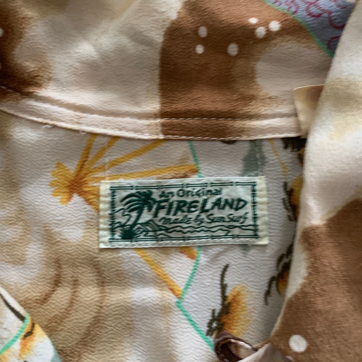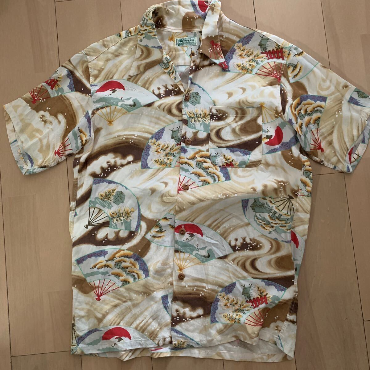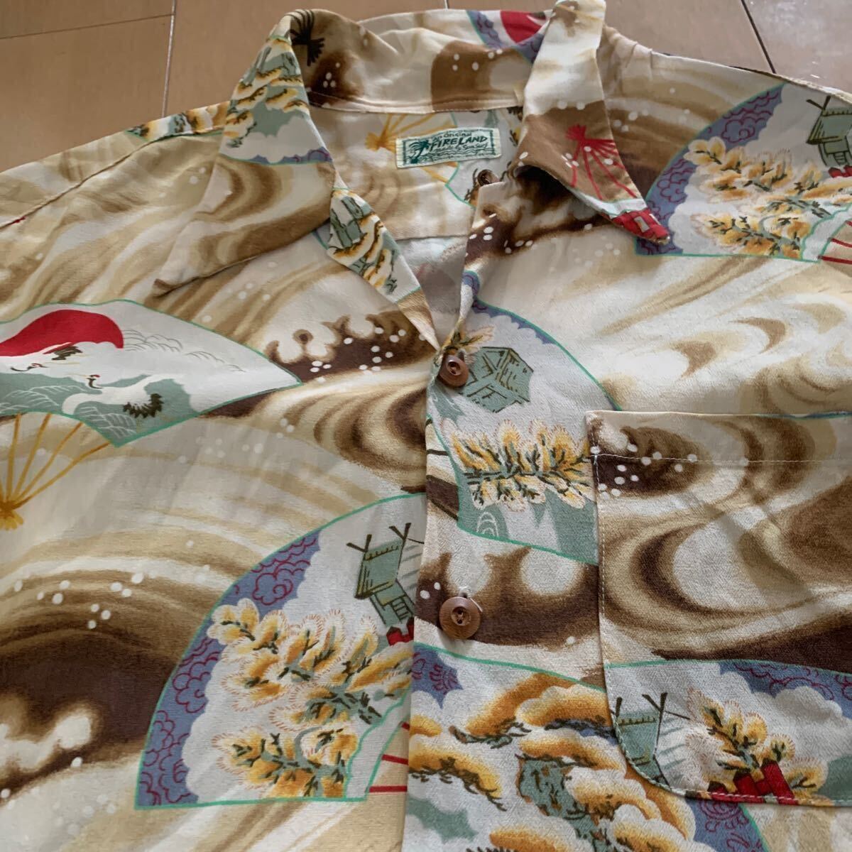 90s【FIRELAND made by SUN SURF】M品番 和柄アロハシャツM レーヨン 総柄 M32689 扇 東洋エンタープライズ