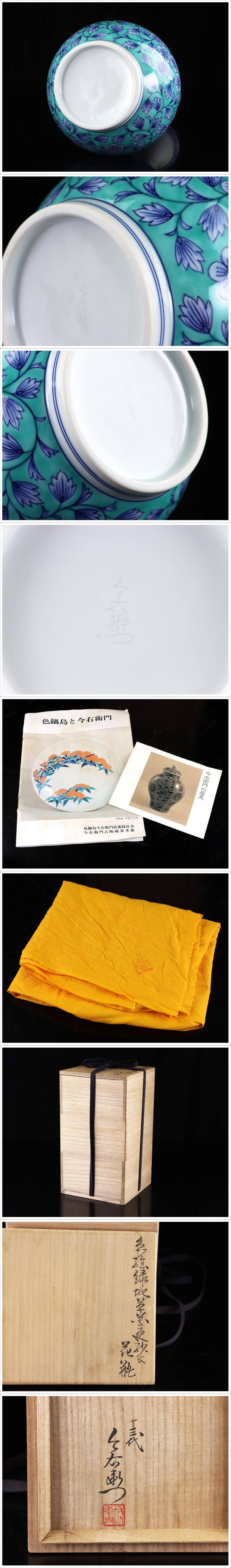 サイズ(約) 高さ 30.5㎝/口径 8㎝/胴径 18㎝ 重量 1360g 付属品 栞・共布・共箱 百貨店個展作品 本物保証 人間国宝 十三代今泉今右衛門 秀逸本人作 色鍋島緑地草花更紗文花瓶 共箱付 本人陰刻銘 高さ30.5㎝ 優美作 本物保証 本物保証 十三代今泉今右衛門 12代今右衛門の長男として生まれ、有田工業学校を経て東京美術学校に学び、卒業後は帰郷して父の薫陶を受けて作陶を開始。 その後、1975年に父の死去に伴い13代を襲名(この間、日本伝統工芸展や一水会展を中心に出品して63年一水会長賞、伝統工芸展日本工芸会会長賞などを受賞、両展の会員、正会員に推挙されている)。 襲名後は襲名記念個展などを各地で開催、また76年には工房の技術上位陶人たちと色鍋島技術保存会を組織(重要無形文化財総合指定)。 その後も伝統を守りながらも常に新しい技法も取り入れた現代的な作陶を志して伝統工芸会展や公募展に出品、更に地域の発展や後進の育成にも貢献を示し76年に日本陶磁協会賞、79年佐賀県芸術文化賞、84年西日本文化賞、86年紫綬褒章、佐賀県功労賞、佐賀新聞文化賞、 88年毎日芸術賞、第1回MOA岡田茂吉大賞展大賞などを受賞して89年に国指定重要無形文化財(人間国宝)の認定、 同年日本陶磁協会金賞、99年勲4等旭日中綬章など多数の受賞、表彰歴を持つ。 個展では国内はもとよりスペイン、ポルトガル、パリなどで開催して高い評価を受けており、95年に国際文化交流に尽力したとして外務大臣表彰されている。 十三代が吹墨や薄墨と共に好んだ技法の一つが用いられており、鮮やかな呉須を用いて美しき草花文を緻密に描いた上で余白を緑の上絵の具にて塗り上げることで、素晴らしい色彩効果を生み出しています。 十三代の高い技巧と美意識が色濃く表れた逸品です。 豊かな造形美を見せる本作をご自慢のコレクションにお加え下さい。 高台内に「今右衛門」陰刻銘あり。 実に見事な芸術作品になります!大事にしていただける方の入札お待ちしております。 |
