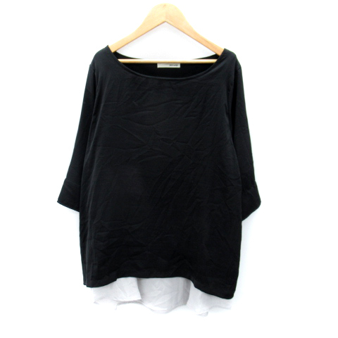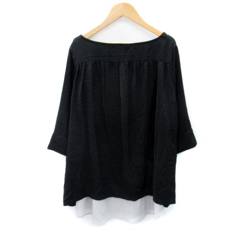 シューラルー SHOO・LA・RUE カットソー 七分袖 ラウンドネック 無地 レイヤード風 L ブラック 黒 /SY25 レディース