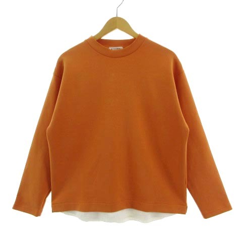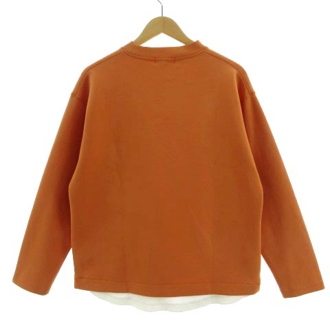 ザショップティーケー THE SHOP TK ダンボールプルオーバー 616-32741 カットソー 長袖 レイヤード風 ボンディング生地調 オレンジ 白 L