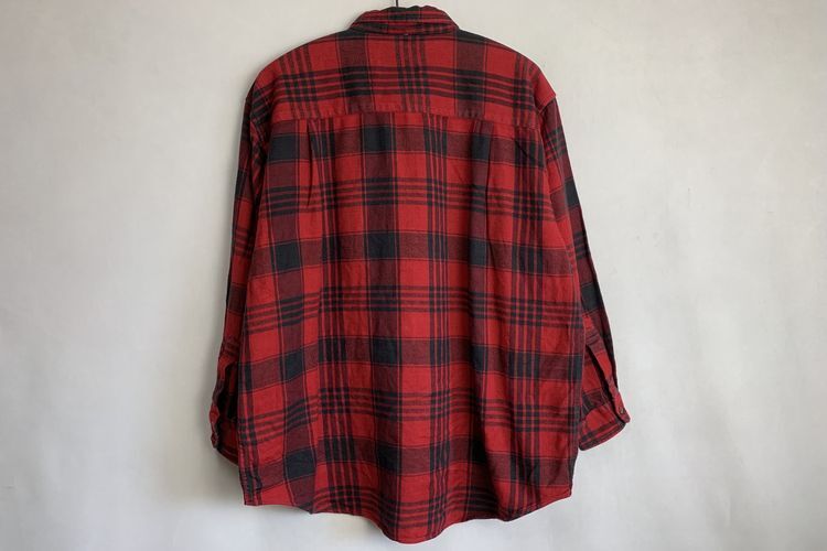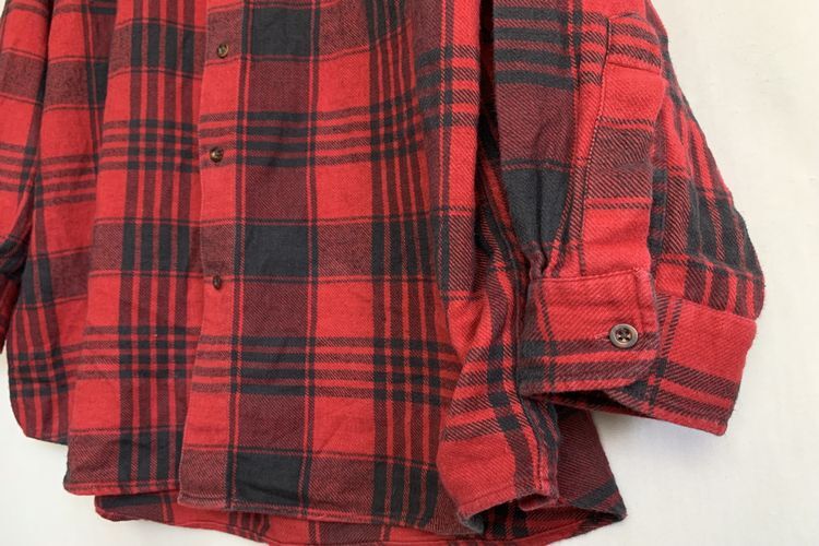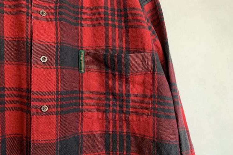 90sビンテージAbercrombie&Fitchアバクロンビーアンドフィッチインド綿フランネルボタンダウンシャツL赤黒グレンチェックアメカジnr24905