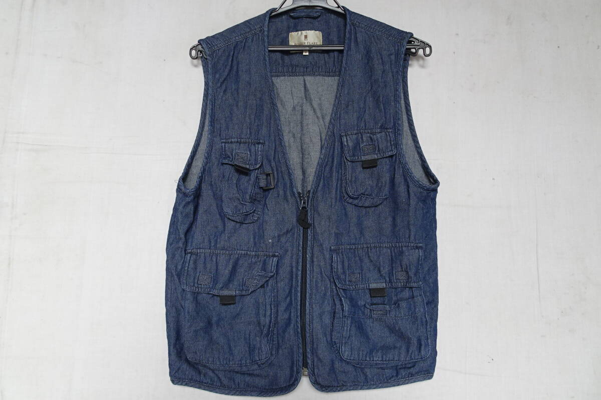 ROGER FLARE/ロジャーフレア/ベスト/デニム風素材/Vネック/前ジップアップ/フラップポケット/インディゴブルー/Mサイズ(4/18R)