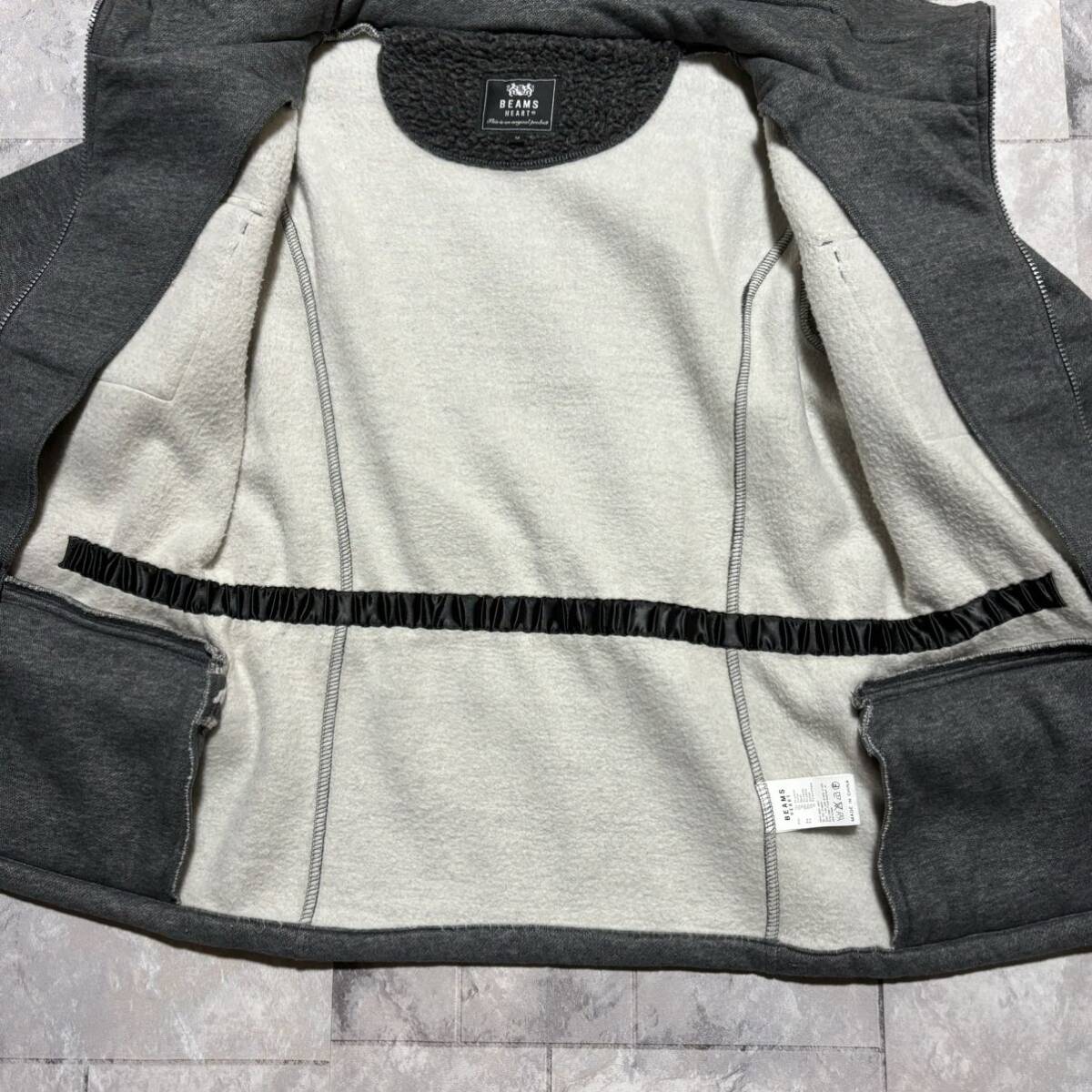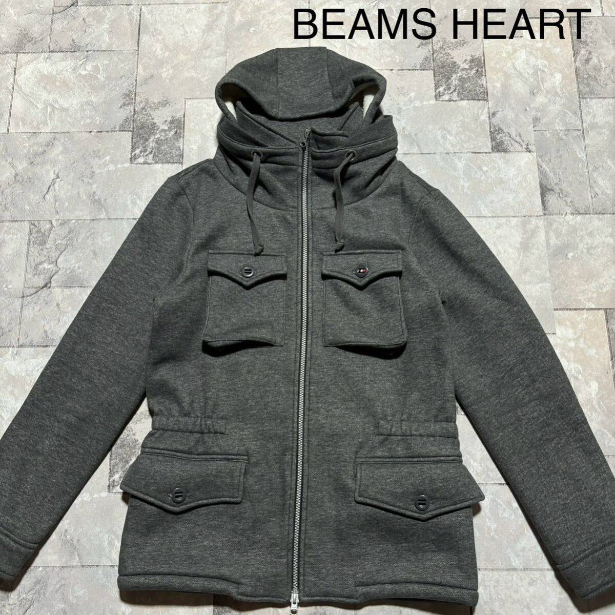 BEAMS HEART ビームスハート ジップアップフードジャケット ブルゾン ポリエステルコットン ウエストゴム入り グレー サイズM 玉FS1332
