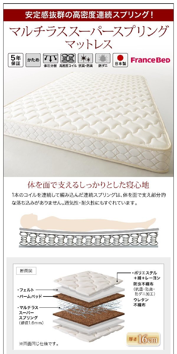 棚・コンセント付きフロアベッド マルチラススーパースプリングマットレス付き ダブル 組立設置付