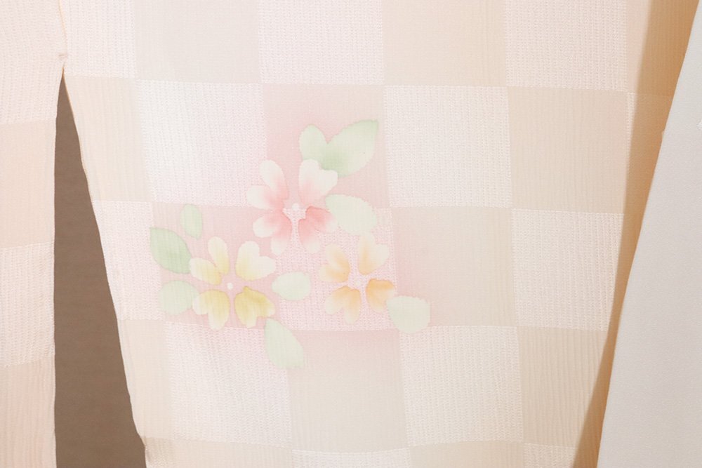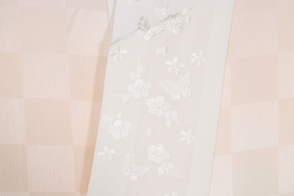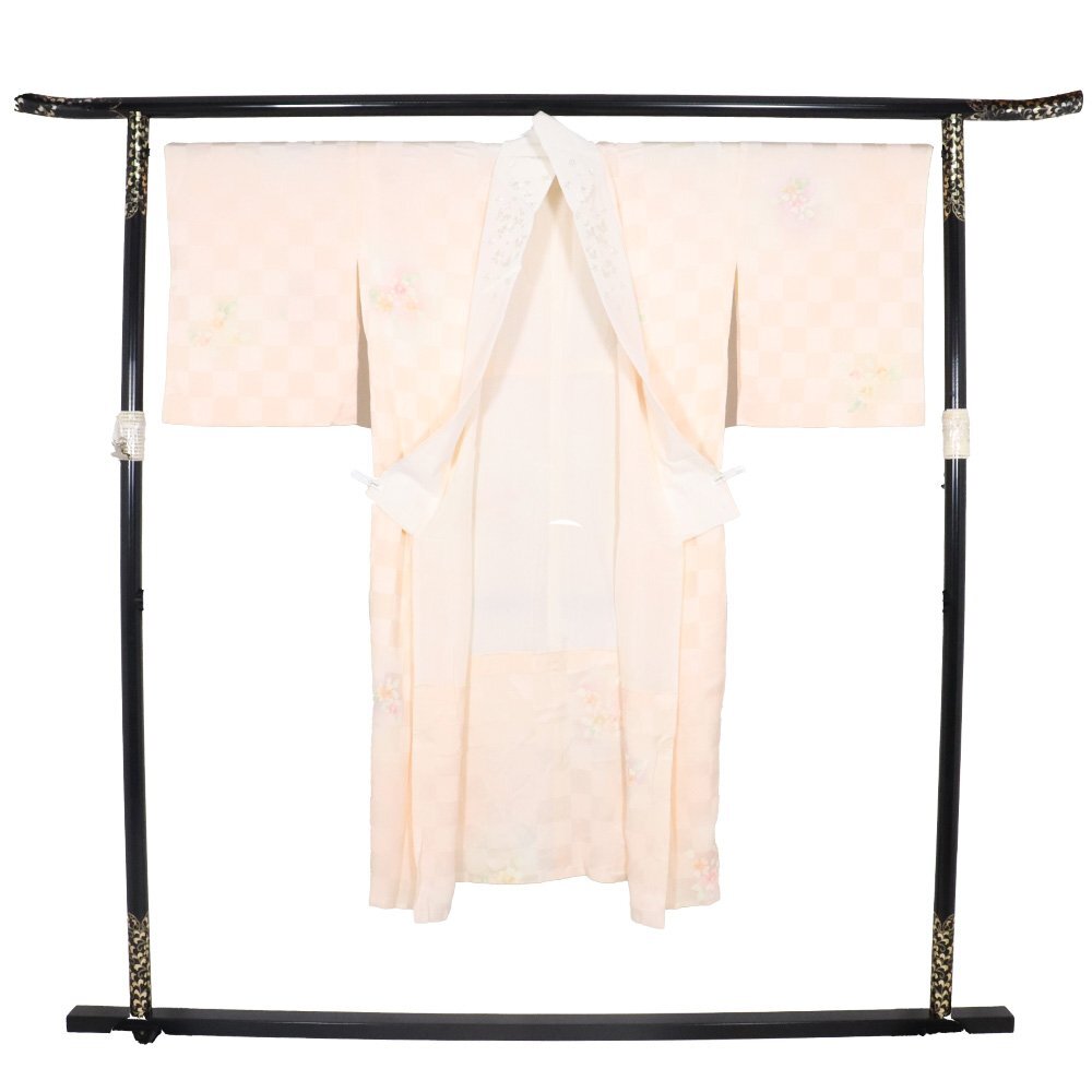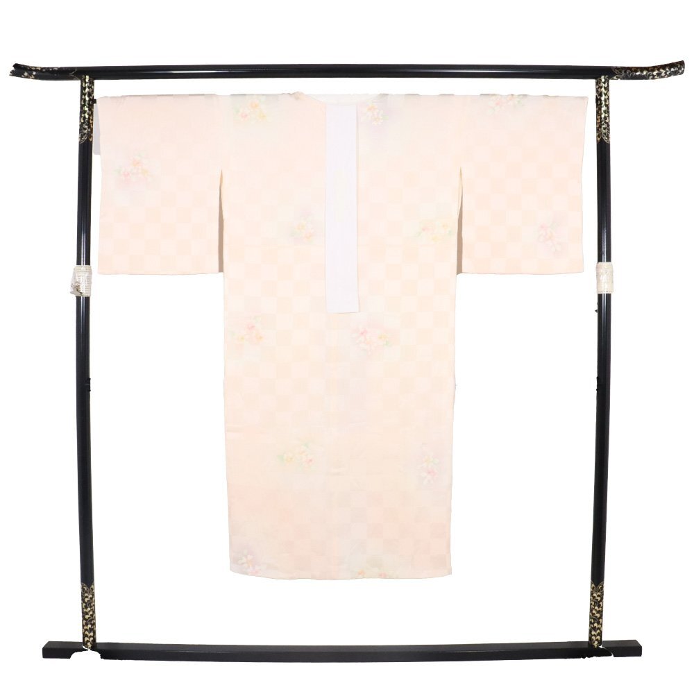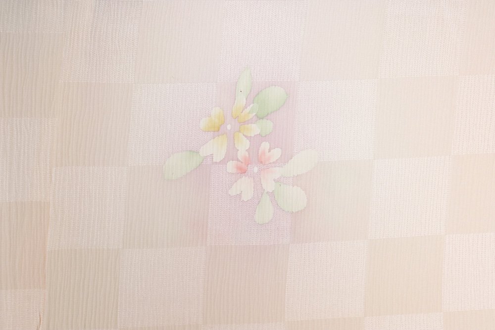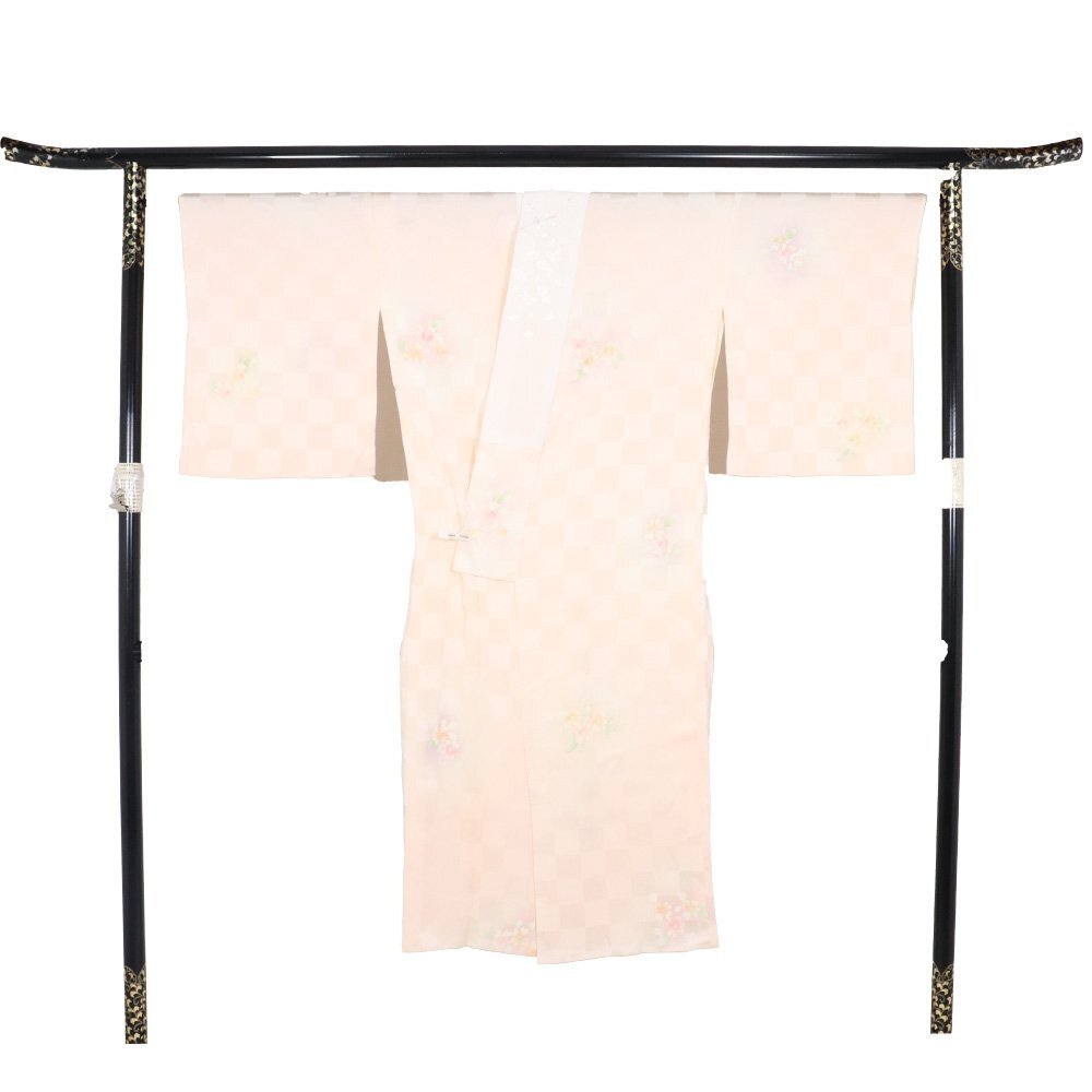 | 色・柄 | 高級長襦袢 袷 広襟 刺繍襟付き ピンクオレンジ・市松模様地 花扇 (写真では上手く色が出ない場合があります。ご了承下さい) |