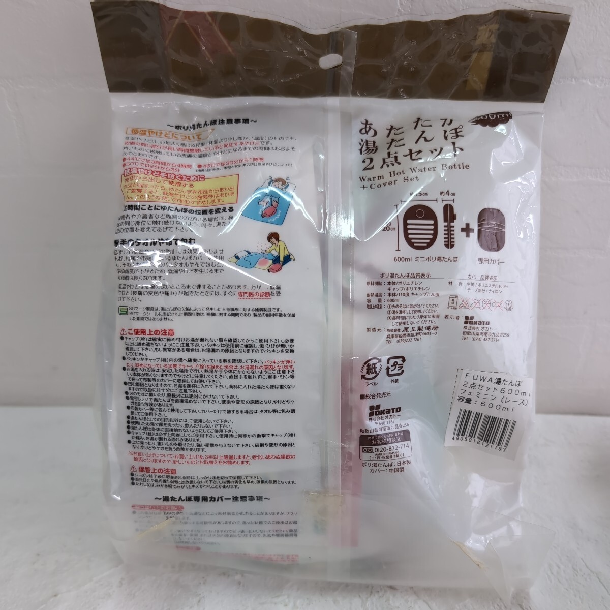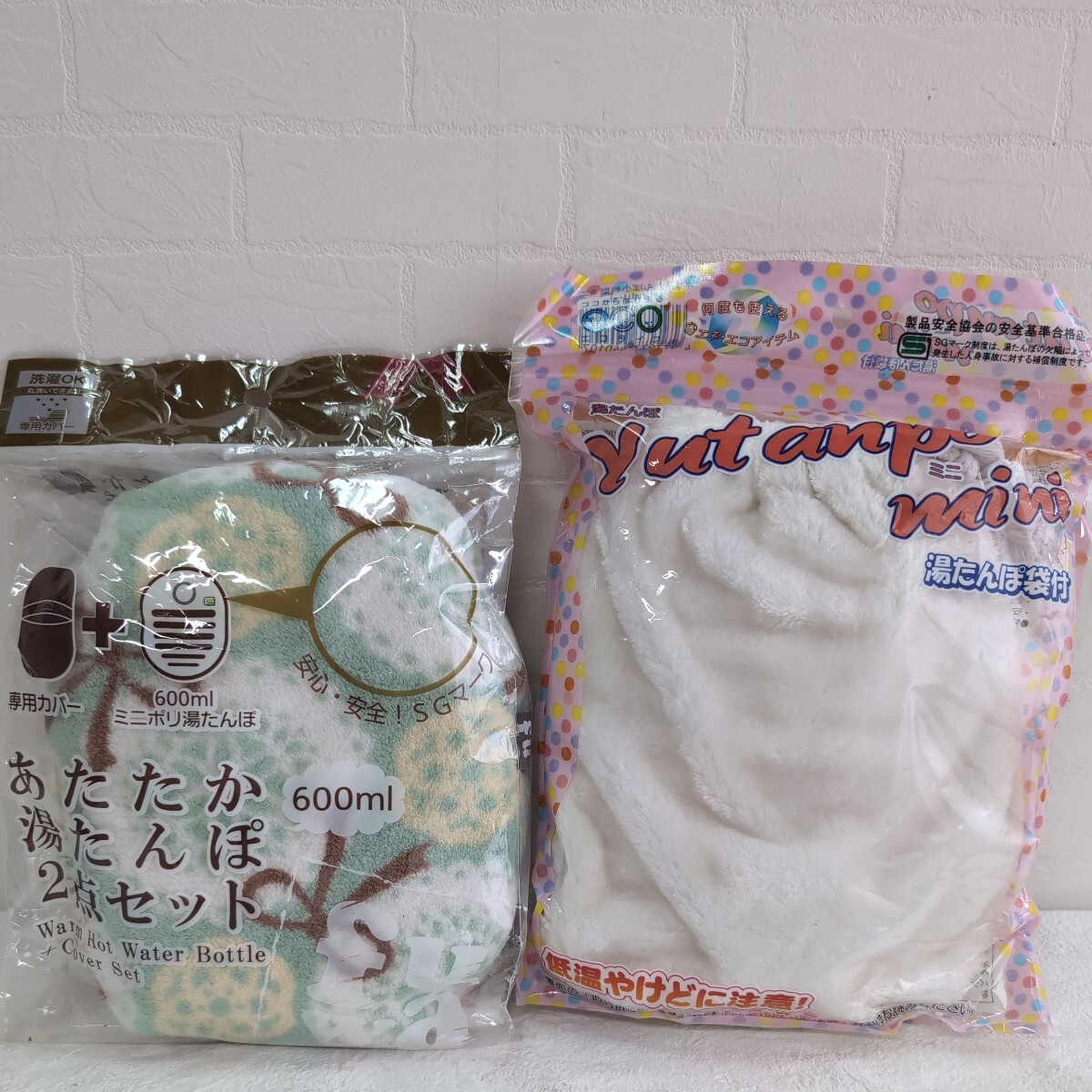 フリース素材のカバーが付いたポリ製ミニ湯たんぽ2点セットです。