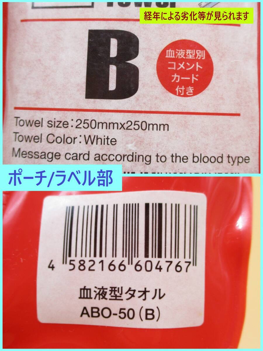 | 撮影・確認の為、開封しましたが、 商品自体は未使用品です。 自身の血液型を強く主張する、 「B型」の方向け 血液型タオルです。 タオルのサイズは、小さめな約25cm×25cm。 独特な形の「ポーチ」・ 「血液型コメントカード」とのセット商品です。 倉庫での長期保存品です。 「ポーチ」には、スレ・汚れ・色あせ・ ラベルの劣化等の傷みが見られます。 また、「タオル」に 経年劣化・汚れ等がある場合があります。 このため「訳あり」として出品いたします。 以下の商品説明をよくご覧になってから、 ご検討をお願い致します。 神経質な方、完品をご希望の方は、 御入札をご遠慮ください。 【商品内容】 「血液型タオル B型」 × 1点 タオルサイズ:約25cm×25cm タオルカラー: 白地に赤で柄がプリントされています その他: 製造メーカー・素材等の詳細は 不明 「血液型別コメントカード」付き *状態等は画像にてご確認ください *実際の商品の色味とは異なる場合があります 【状態等】 ・撮影・確認の為開封しましたが、 商品自体は未使用品です。 ・外ケースには、スレ・キズ・折れ・ 値札シールのはがし跡などの 傷みが見られます。 美品をご希望の方はご遠慮ください。 ・長期保存品の為、 タオルに汚れ等がある場合があります。 ご了承ください。 以上の点をご承知いただける方のみ、 ノークレーム・ノーリターンにて、 ご検討ください。 | ||