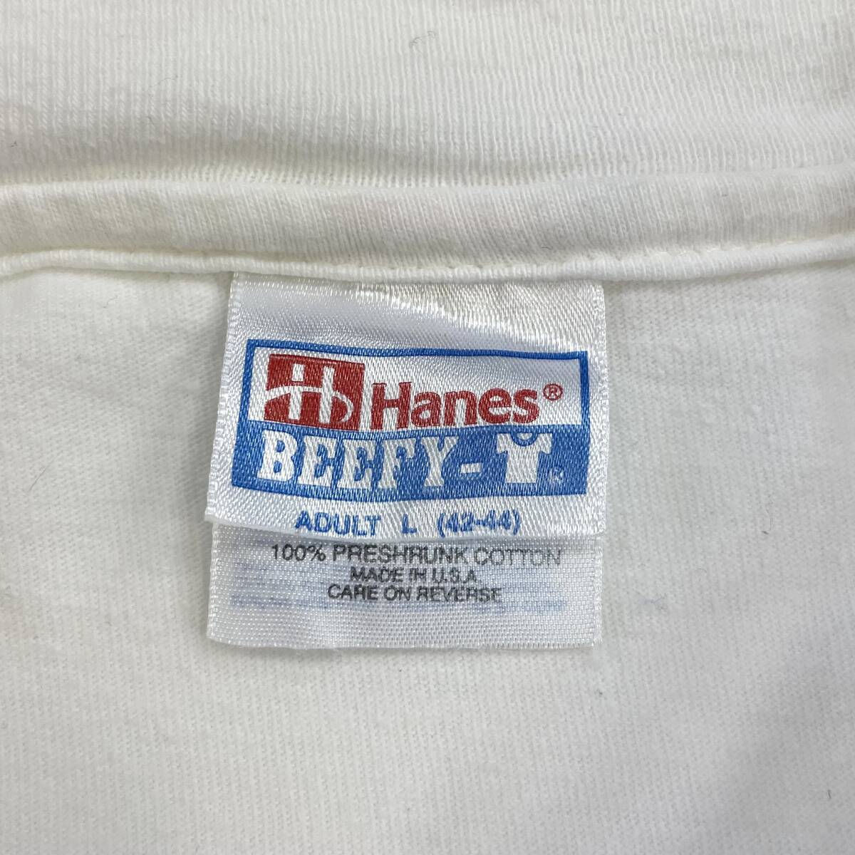 USA製Hanesボディ、袖・裾シングル、表記Lサイズ。