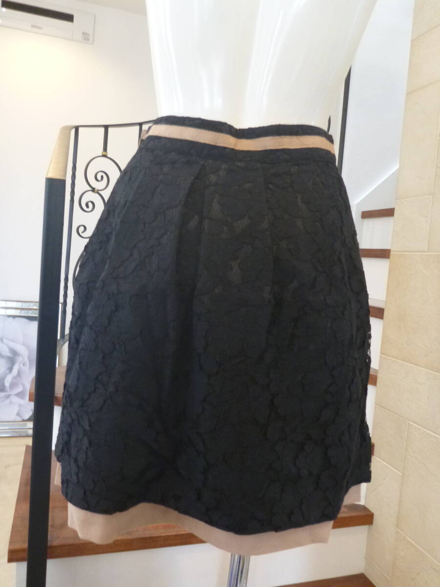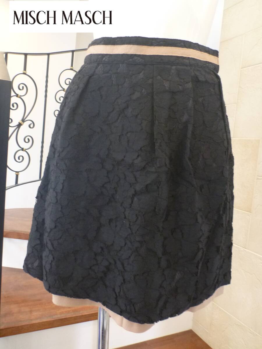 1.2万 超美品 MISCH MASCH (ミッシュマッシュ)★リバーシブル 黒レース×キャメルベージュ バイカラー スカート 36 S相当