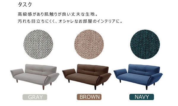 大人気のカウチソファーシリーズに3人掛けタイプが登場! 品質に自信ありの日本製。 背・肘部は5段階リクライニング。 座面に内部にポケットコイルを採用。 程良いクッション製とヘタリにくい構造です。 *発送に1週間ほどかかります (稀に生地欠品の為、長期おまちいただく場合がございます) | ||