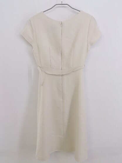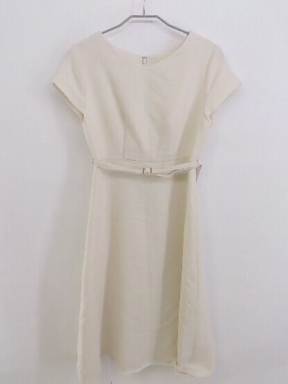 ◇ ◎ Aperi nano universe ウエストベルト付 フレンチスリーブ 膝下丈 ワンピース サイズ36 ライトベージュ レディース P