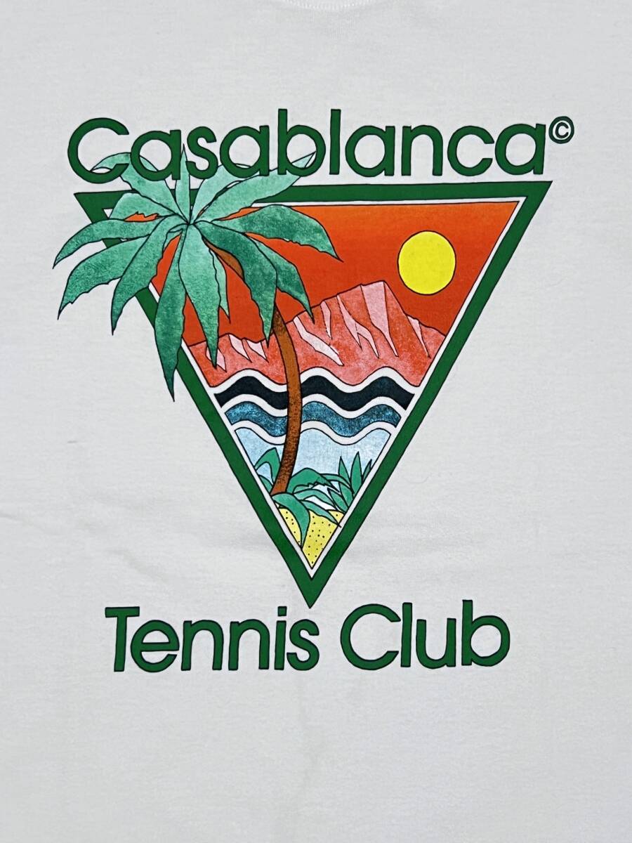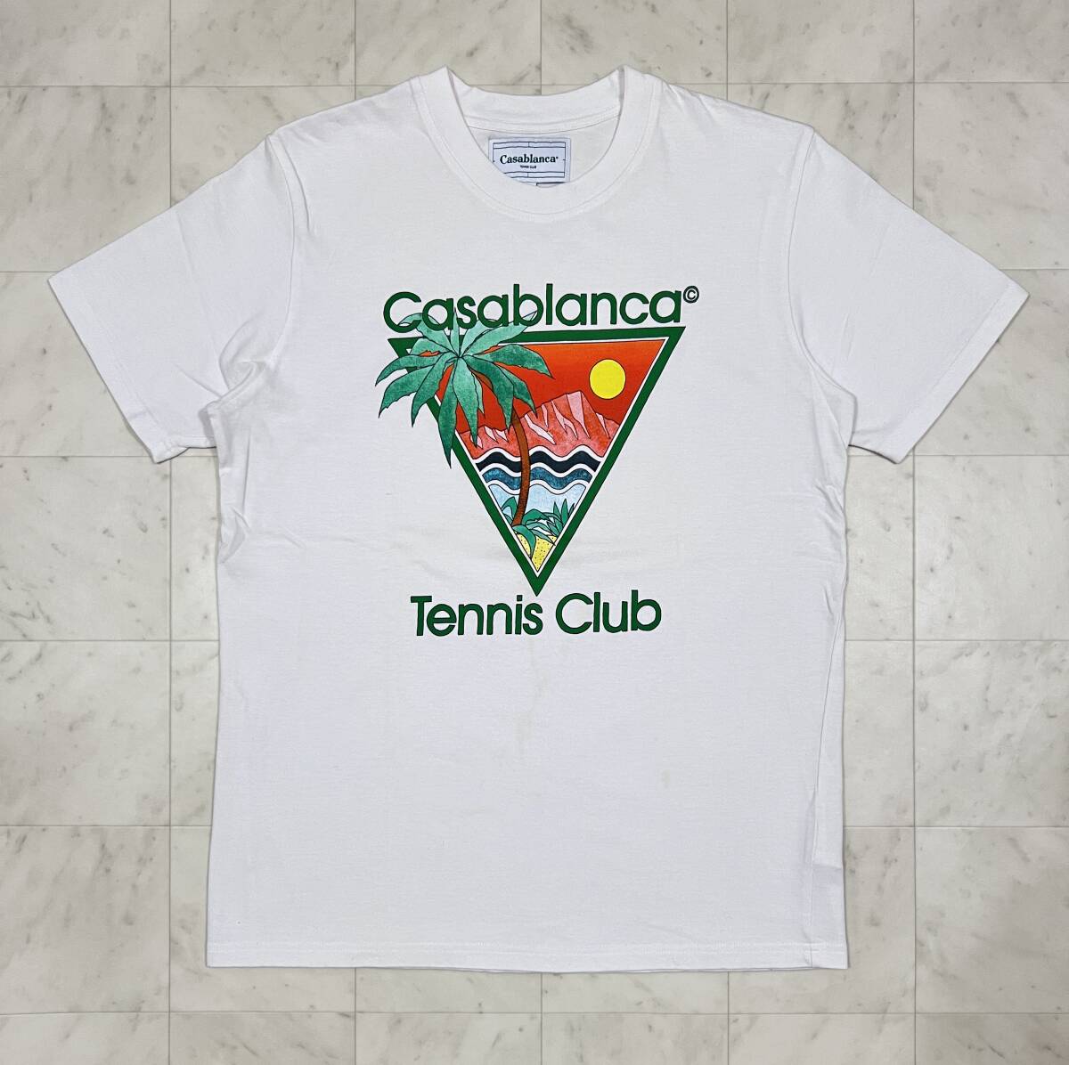 CASABLANCA カサブランカTennis Club テニスクラブ トライアングルプリント Tシャツ Mサイズ ホワイト ※薄いシミあり※