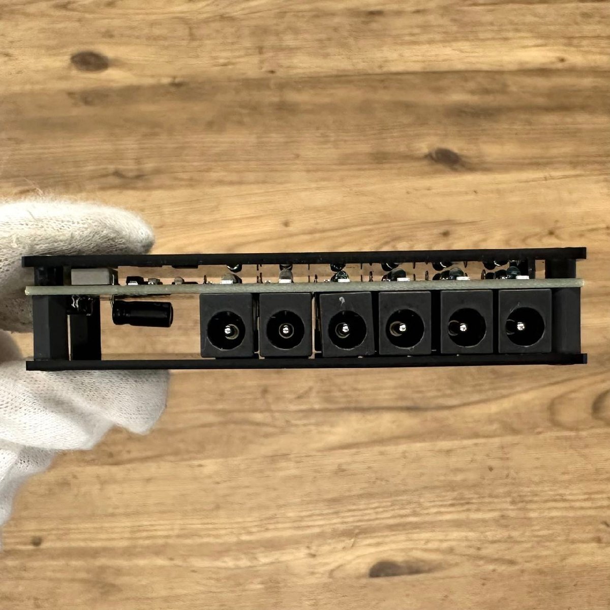 DC PORTER PLEXIは、USB-Cポートにモバイルバッテリーからの電源を接続します。DCアウトは全てセンターマイナスDC9Vで、12口あります。大きなペダルボードにも余裕で対応できます。