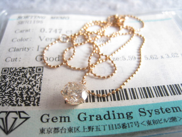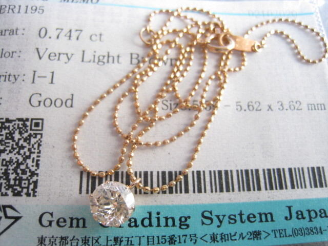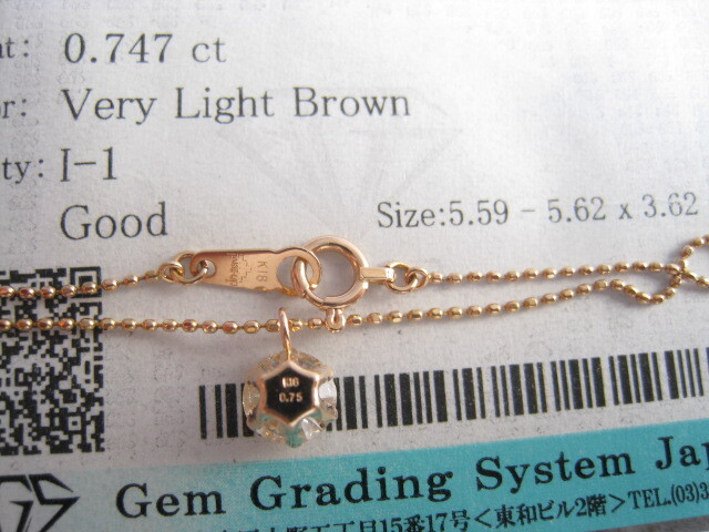 [SAMU]極品!!輝き抜群 大粒ダイヤモンド0.747ct k18ピンクゴールドネックレス★鑑定カード付き!