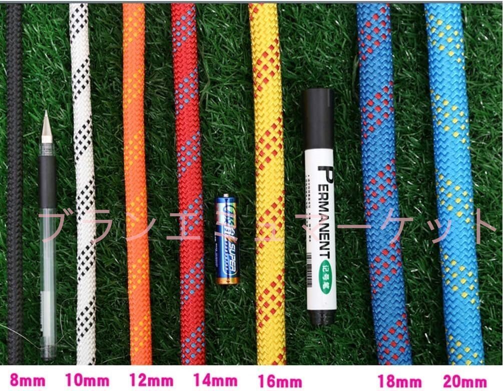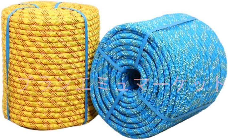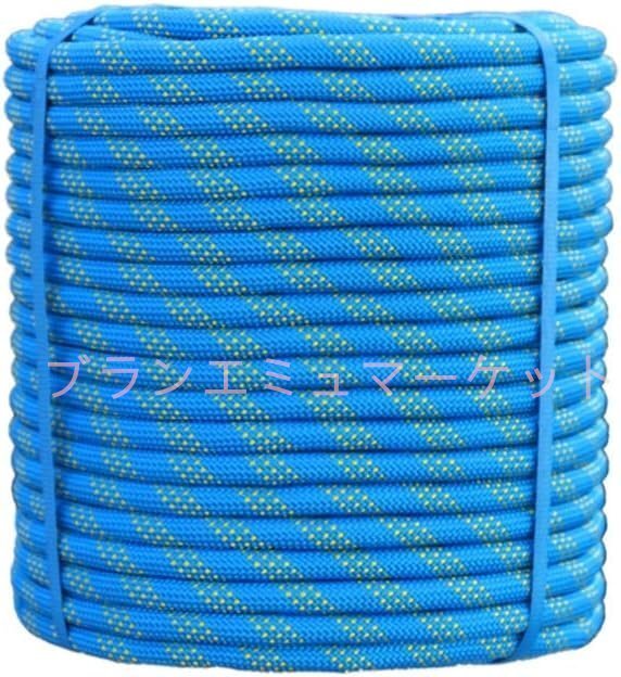 多機能ナイロンロープ 10mm-14mmブルークライミングロープ、ロッククライミングロープ、ダブルカラビナ、安全エスケープロープ、50m 12mm
