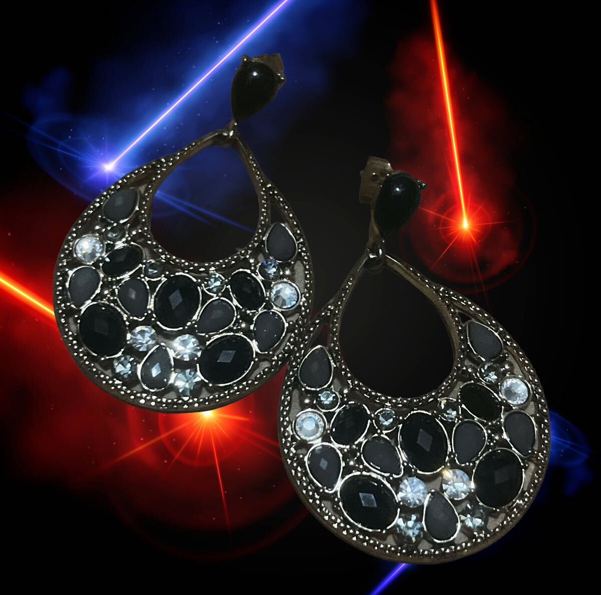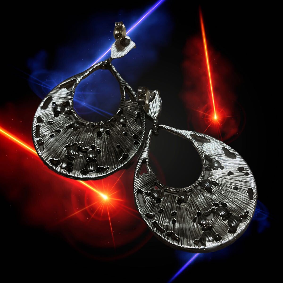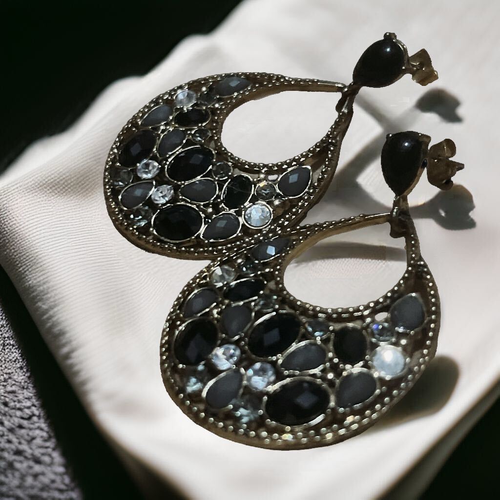真鍮製の雫型デザイン。こちらは黒を基調としたモノトーン。その他のお色も出品しております。