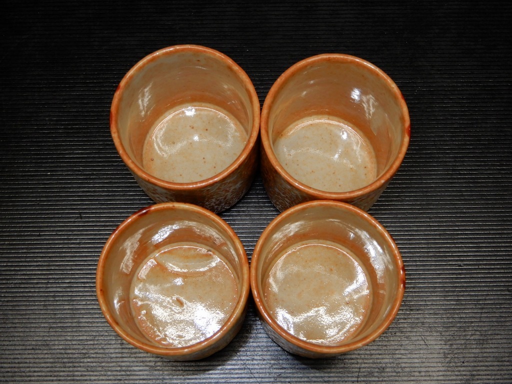 ●●志野焼 湯呑 4客セット 長湯呑 茶道具 来客用 湯飲み茶碗●●