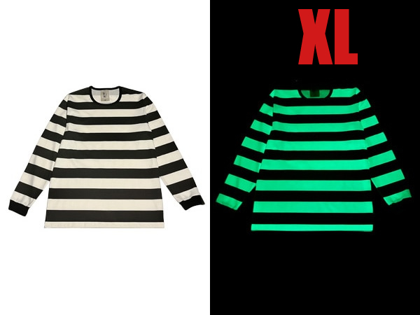 GROW IN THE DARK BORDER L/S T-shirt XL/暗闇で光る長袖tシャツロンteeバンドtシャツバンtロックtシャツrock蓄光プリントボーダーTシャツ