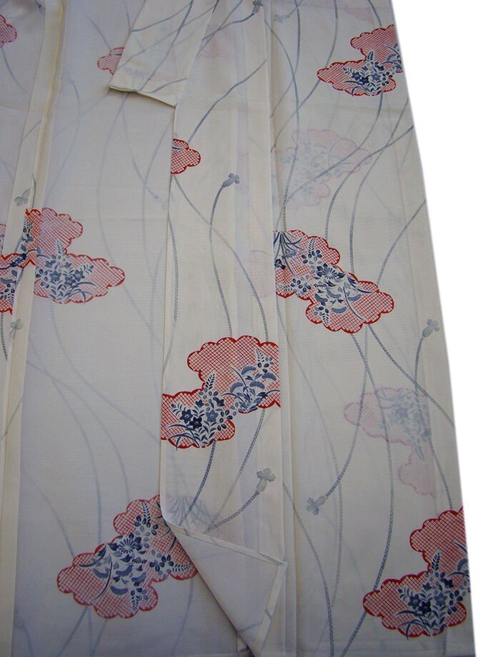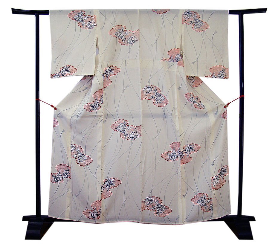 商品説明 | こちらのお品は夏物でございますので、7月~8月にお召頂ければと思います。 「絽」と言えば、紗と双璧を成す夏のお着物の生地で その最大の魅力は絶妙の透かし加減でございます。 清涼感溢れる地の風を通すしなやかさは夏に着物を着るという贅沢を 快適に愉しませてくれることでしょう。 着物には、大きく分けて「袷(あわせ)の着物」と「単衣(ひとえ)の着物」と「夏着物」があります。 反物(表地)を着物に仕立てるときに、裏地類をつけるものを袷の着物、 つけないものを単衣の着物と呼び、胴裏や八掛といった裏地がつかない一枚ものの着物です。 また裏地がないため、座る時などにヒップのラインが目立たないよう、 居敷当て(いしきあて)の生地をつけることもあります。 居敷当ては付いておりません。 とてもしなやかなさらっとした肌触りが極上の着心地を誘う滑らかな「駒絽」の生地は 淡い象牙色地に朱、藍鼠色等の雲取りに鹿の子、花草柄の染柄が 洒落感溢れる着物姿を演出しております。 |