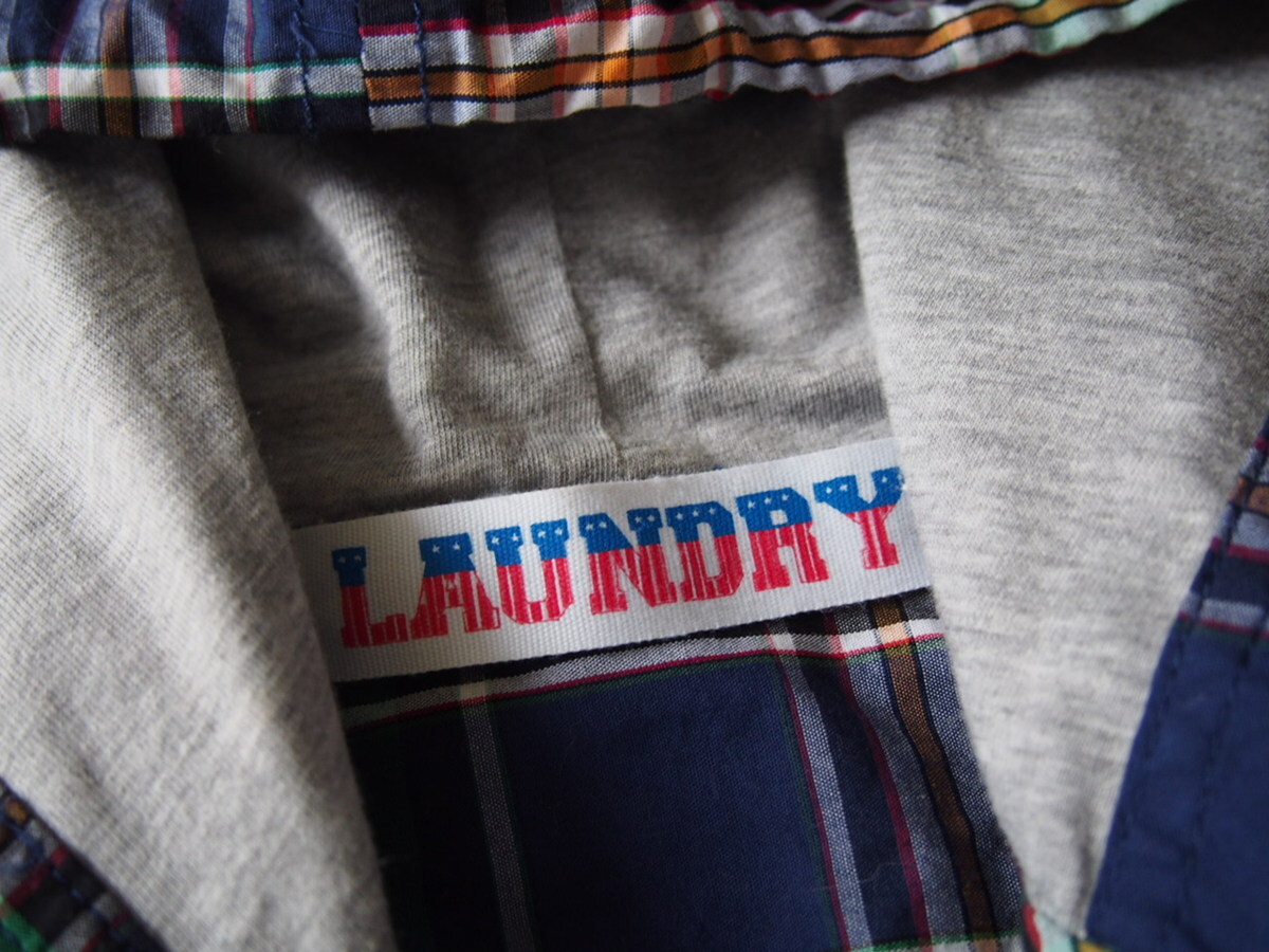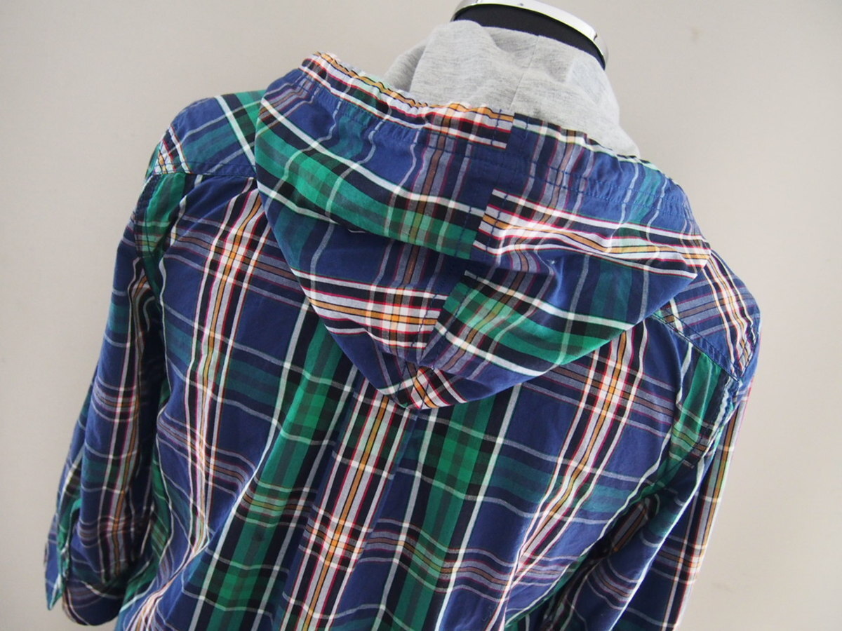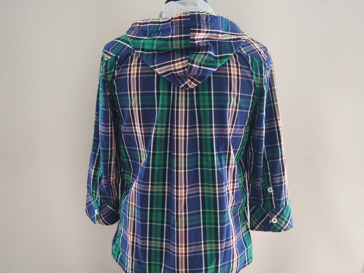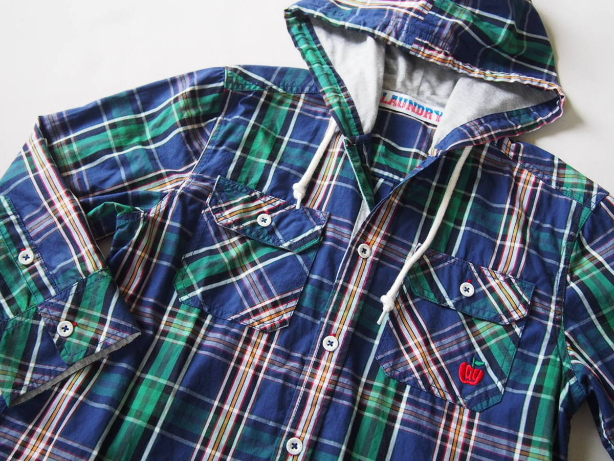ランドリー★七分袖シャツ★七分袖フードシャツ★チェック柄★部分カットソー地異素材切替★刺繍★袖2WAY★Sサイズ★LAUNDRY | |||||||||||||||||||