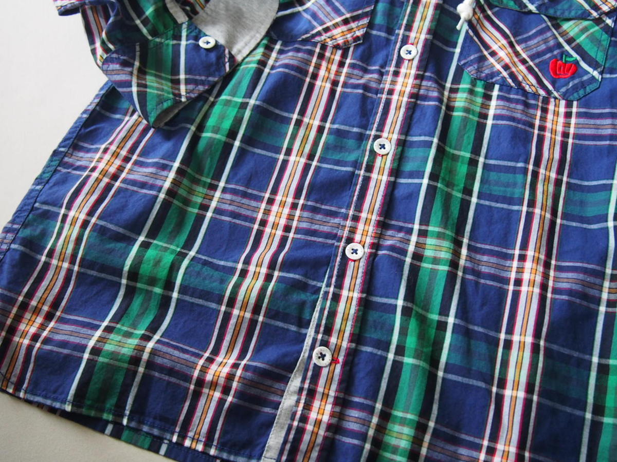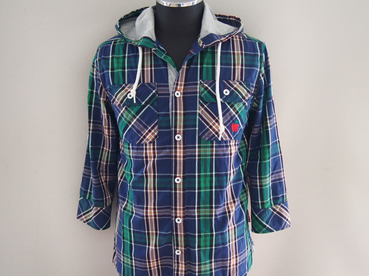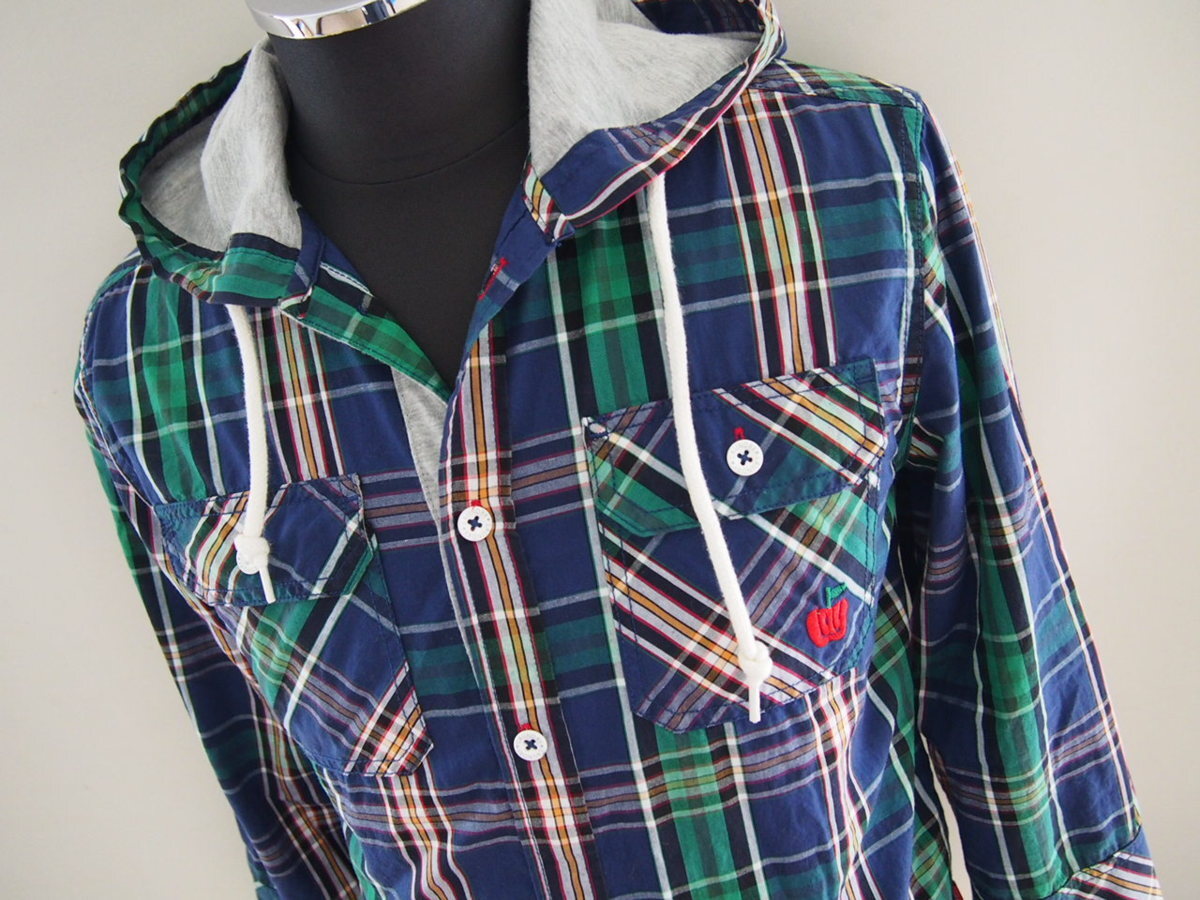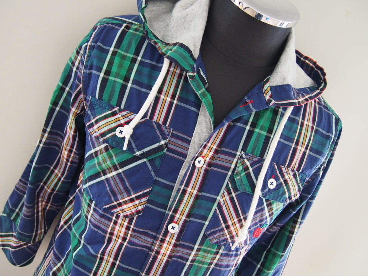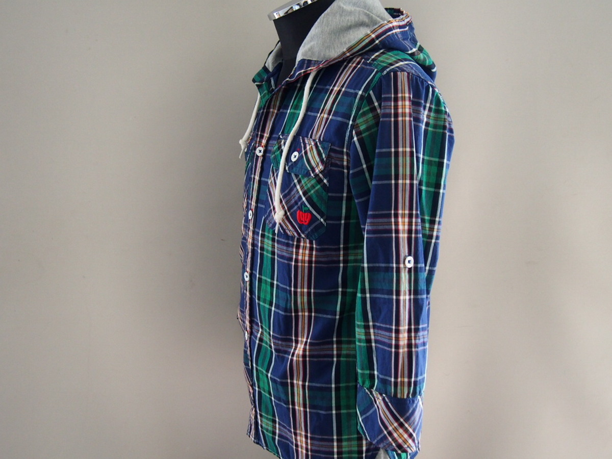 ランドリー★七分袖シャツ★七分袖フードシャツ★チェック柄★部分カットソー地異素材切替★刺繍★袖2WAY★Sサイズ★LAUNDRY | |||||||||||||||||||