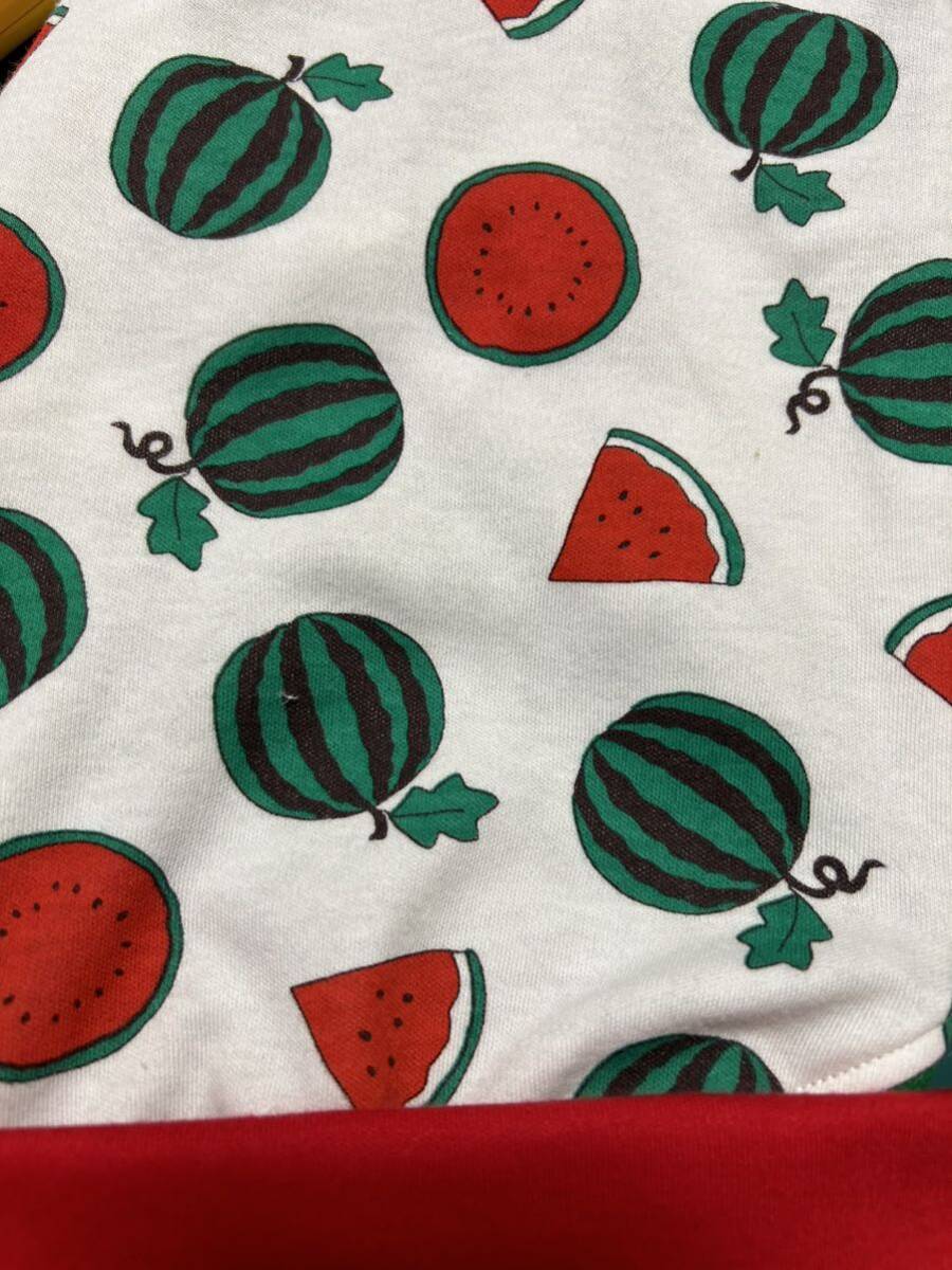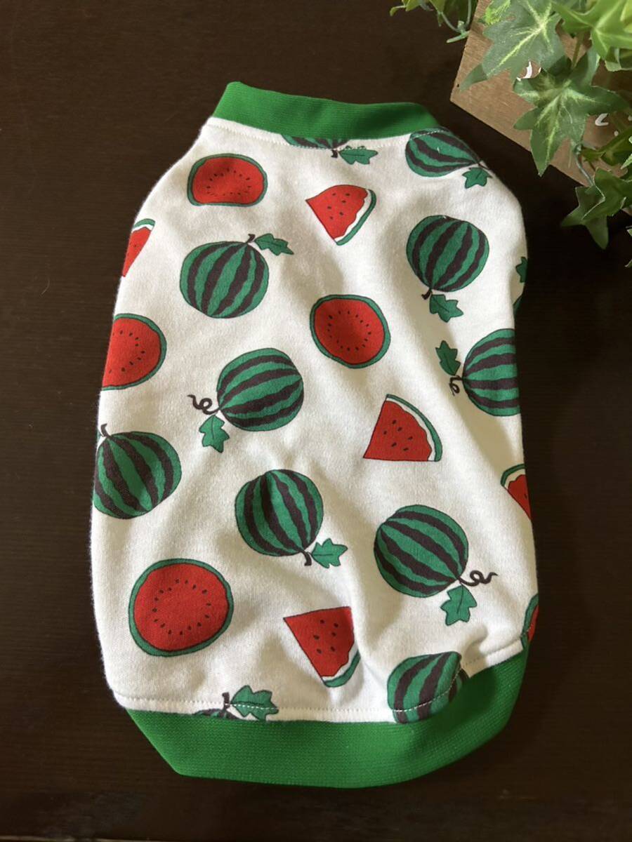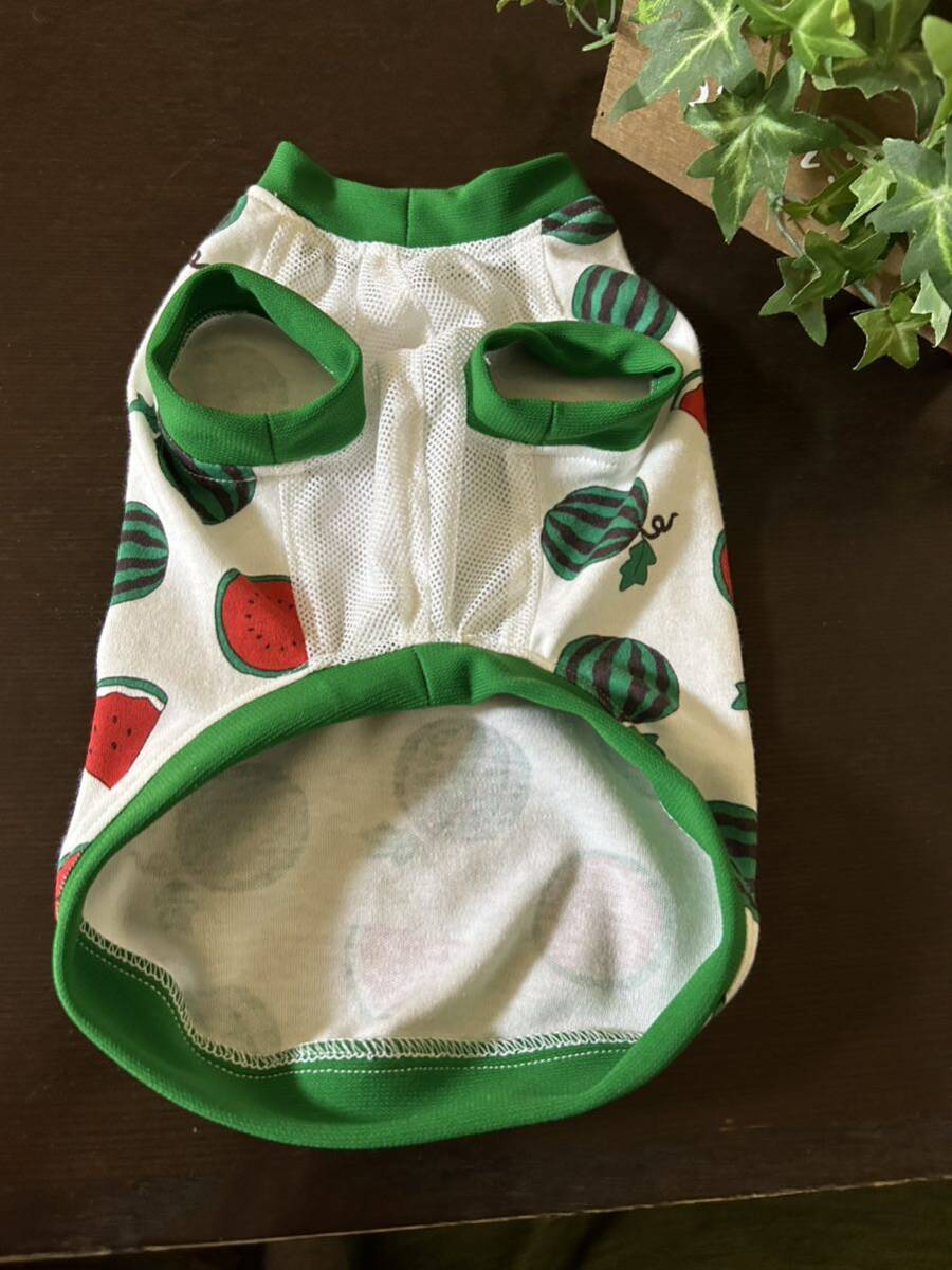 タンクトップはスイカ柄のニット生地と前身頃は白色のメッシュ生地を使用しています。