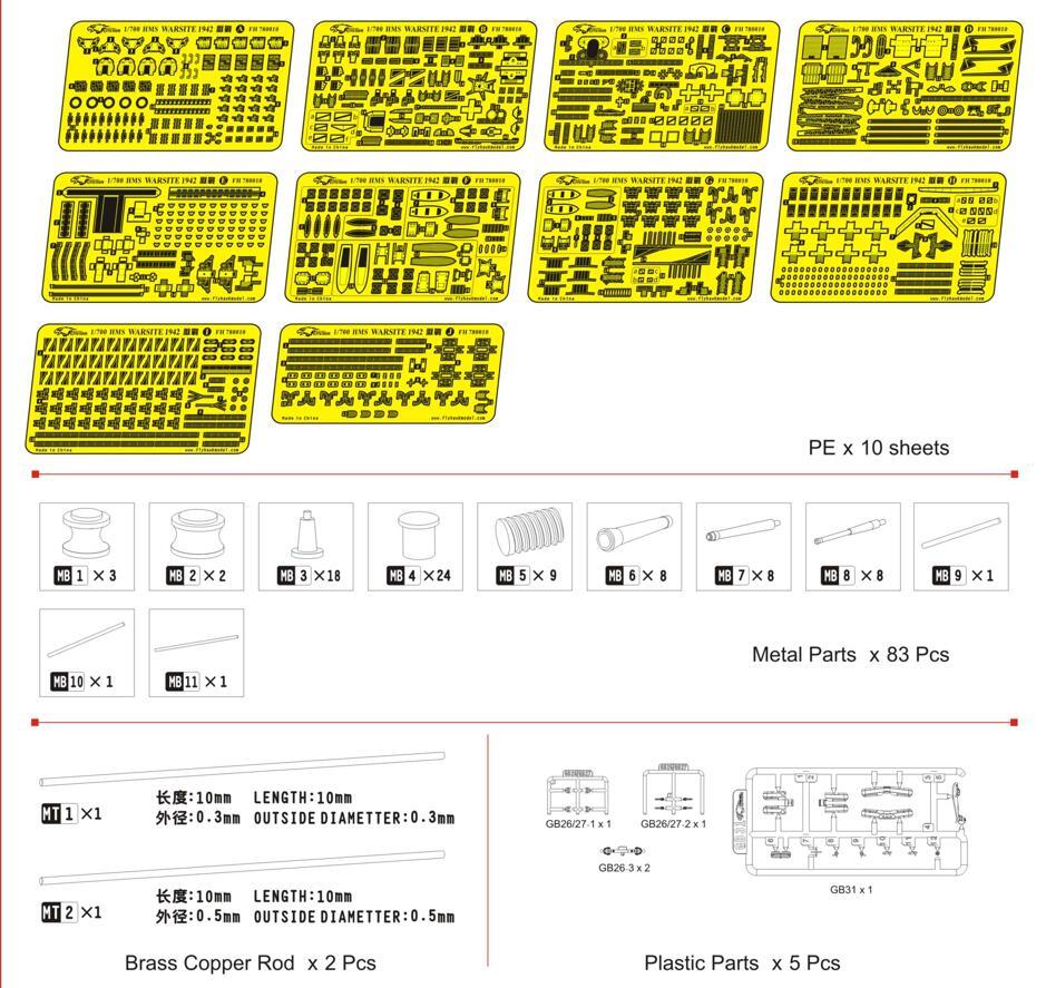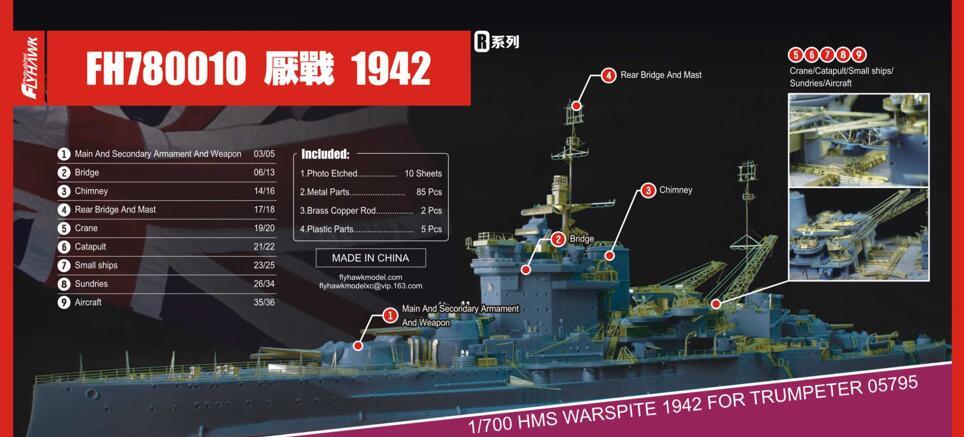 1/700 WWII HMS イギリス海軍 戦艦 ウォースパイト 1942年型 用ディテールアップセット |
