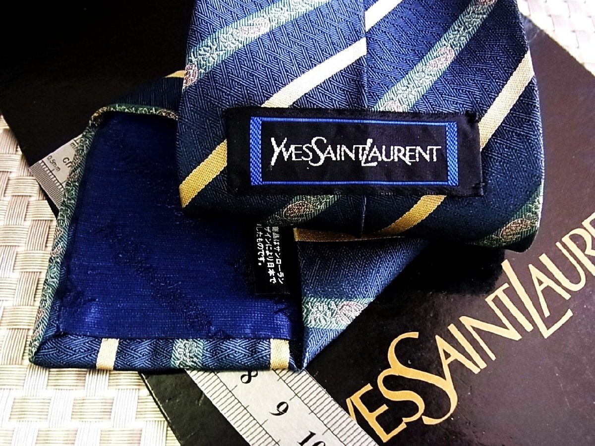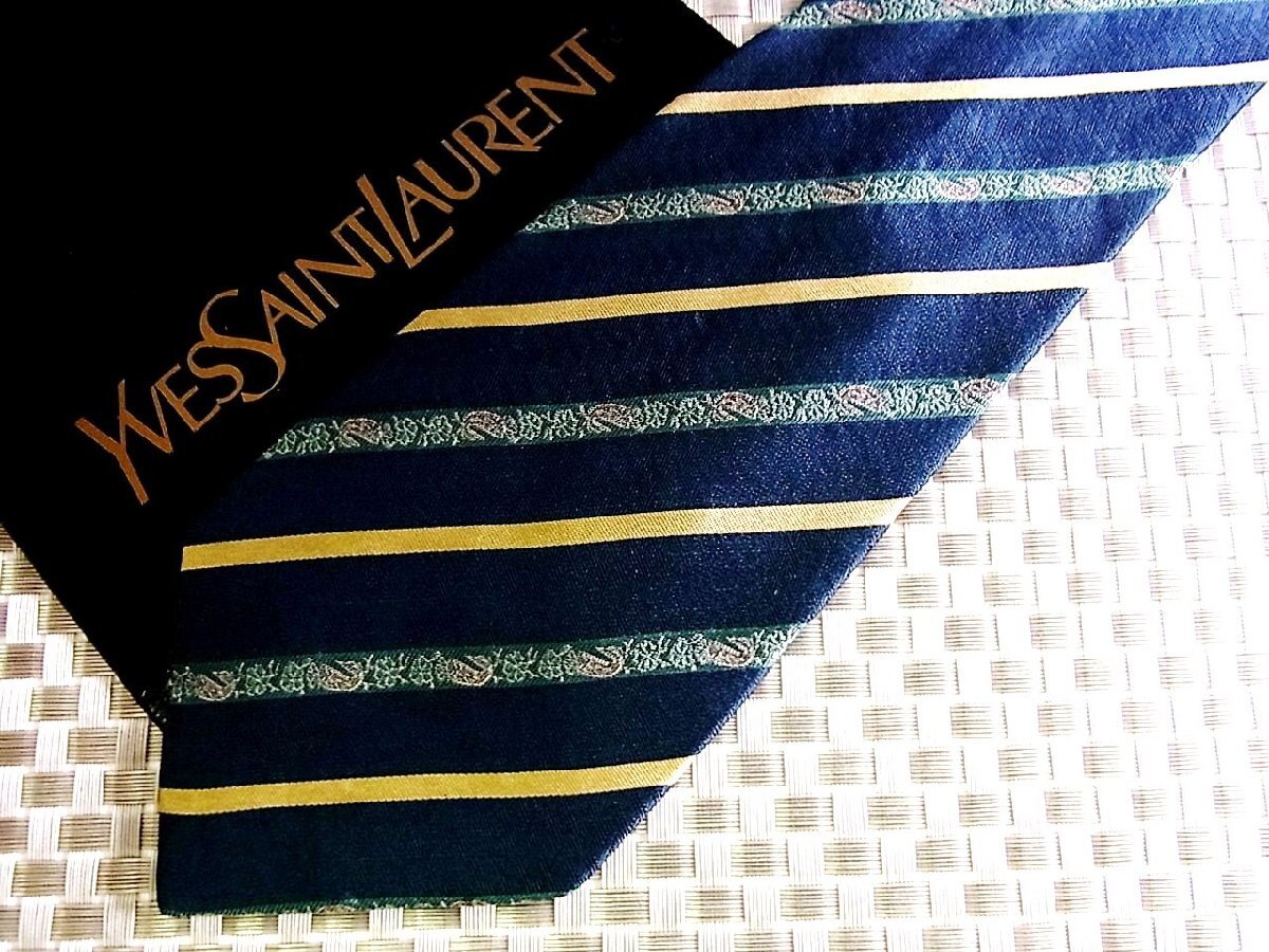 ♪34450D♪状態並品【刺繍 ペイズリー 花 植物 ストライプ 柄】サンローラン【YSL】ネクタイ
