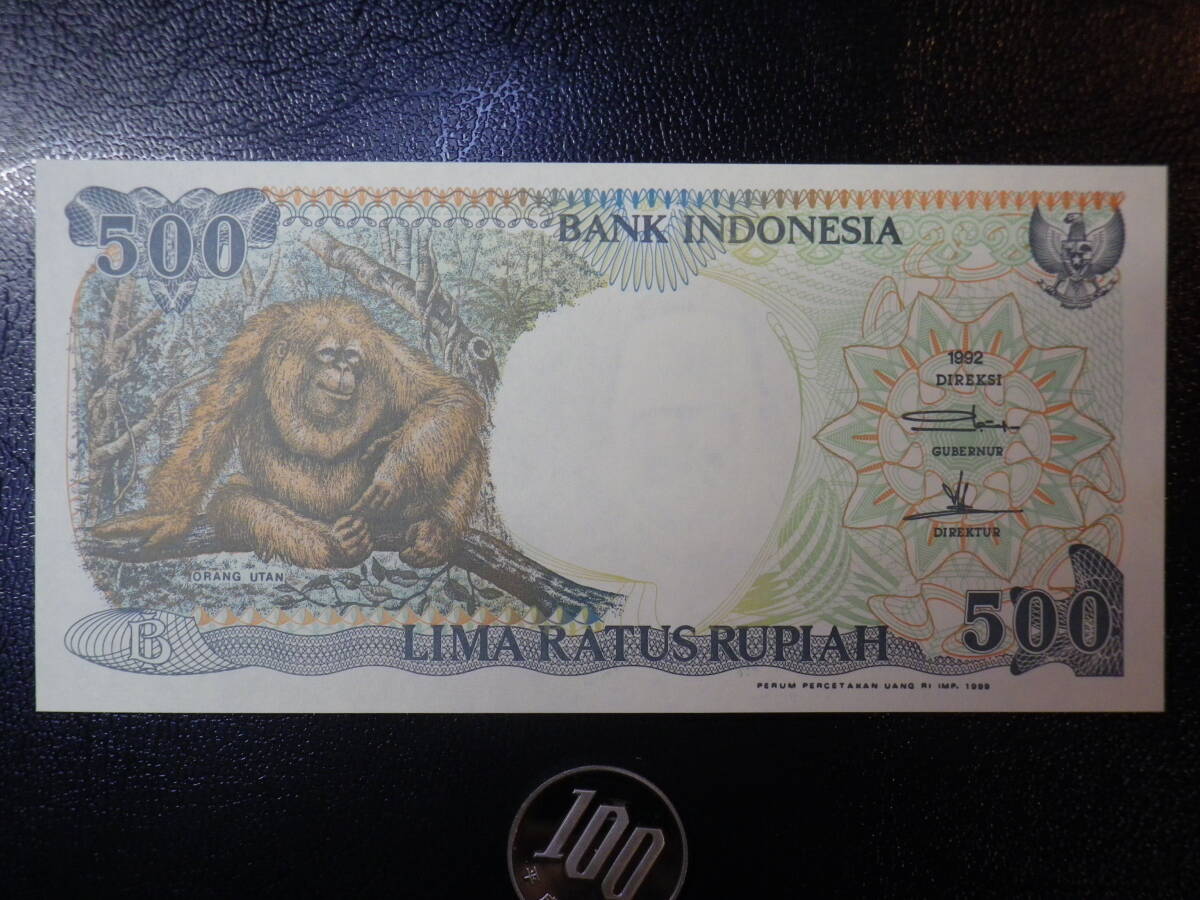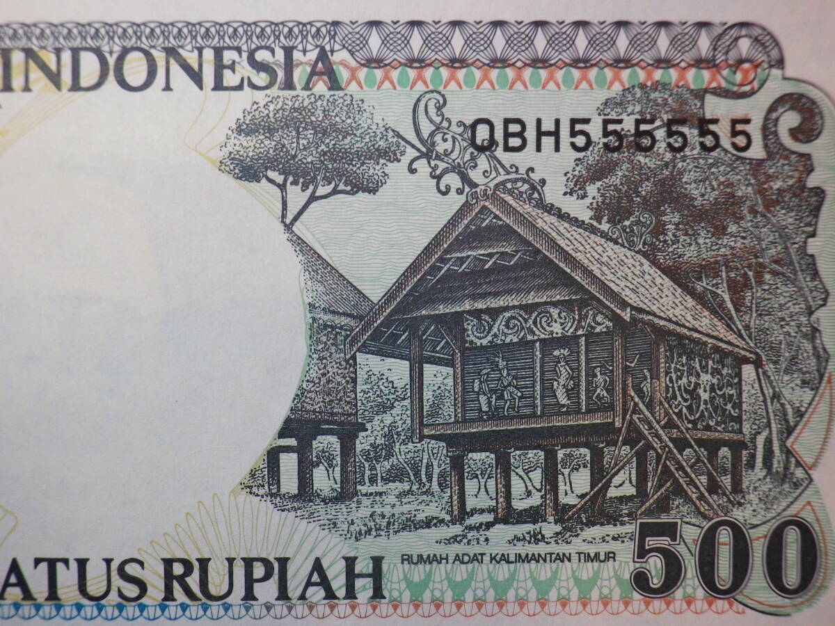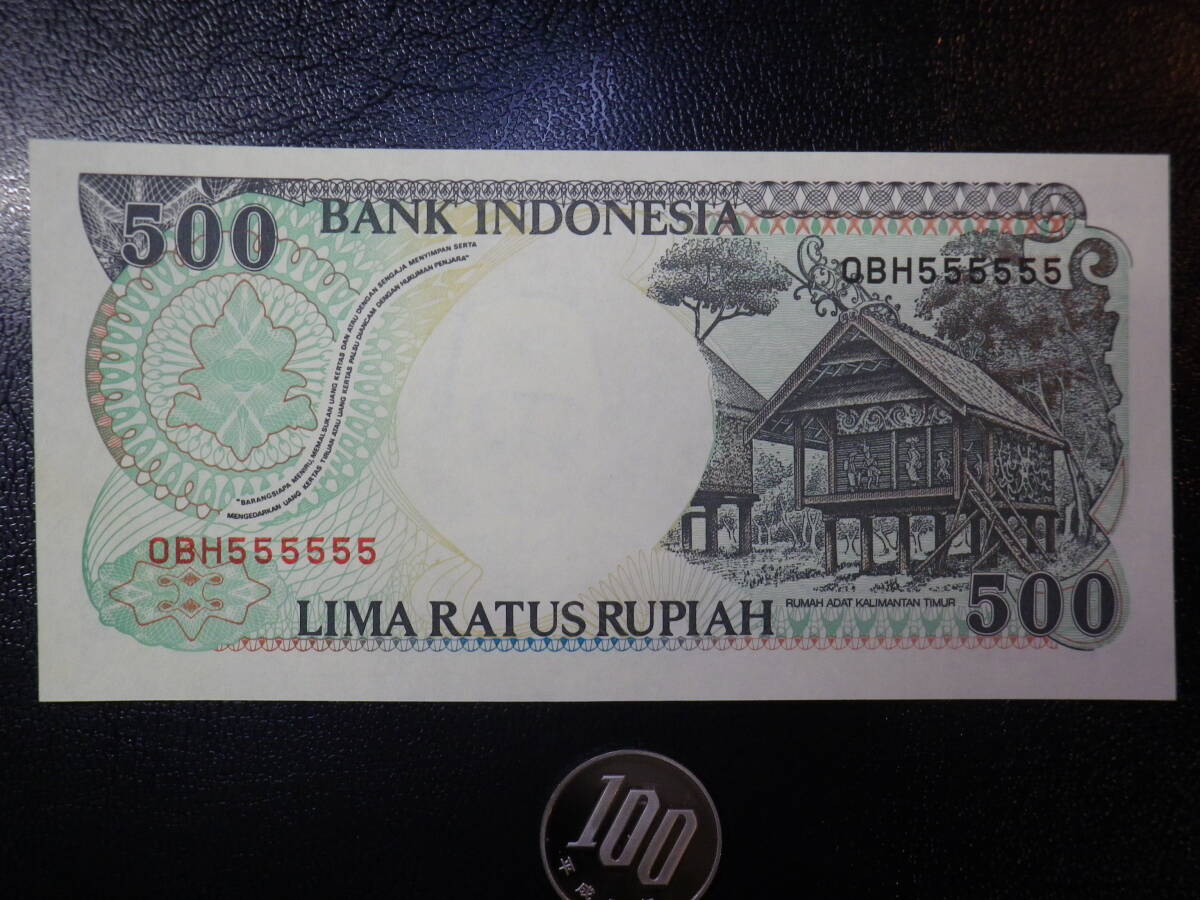 珍番 インドネシア 1992年 500Rupiah QBH 555555 未使用