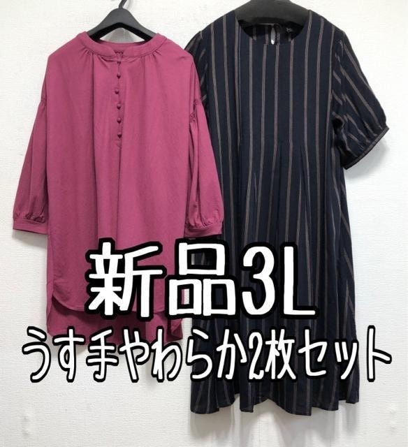 新品☆3L♪うす手やわらか素材♪チュニック&レーヨン100%ワンピース☆x302