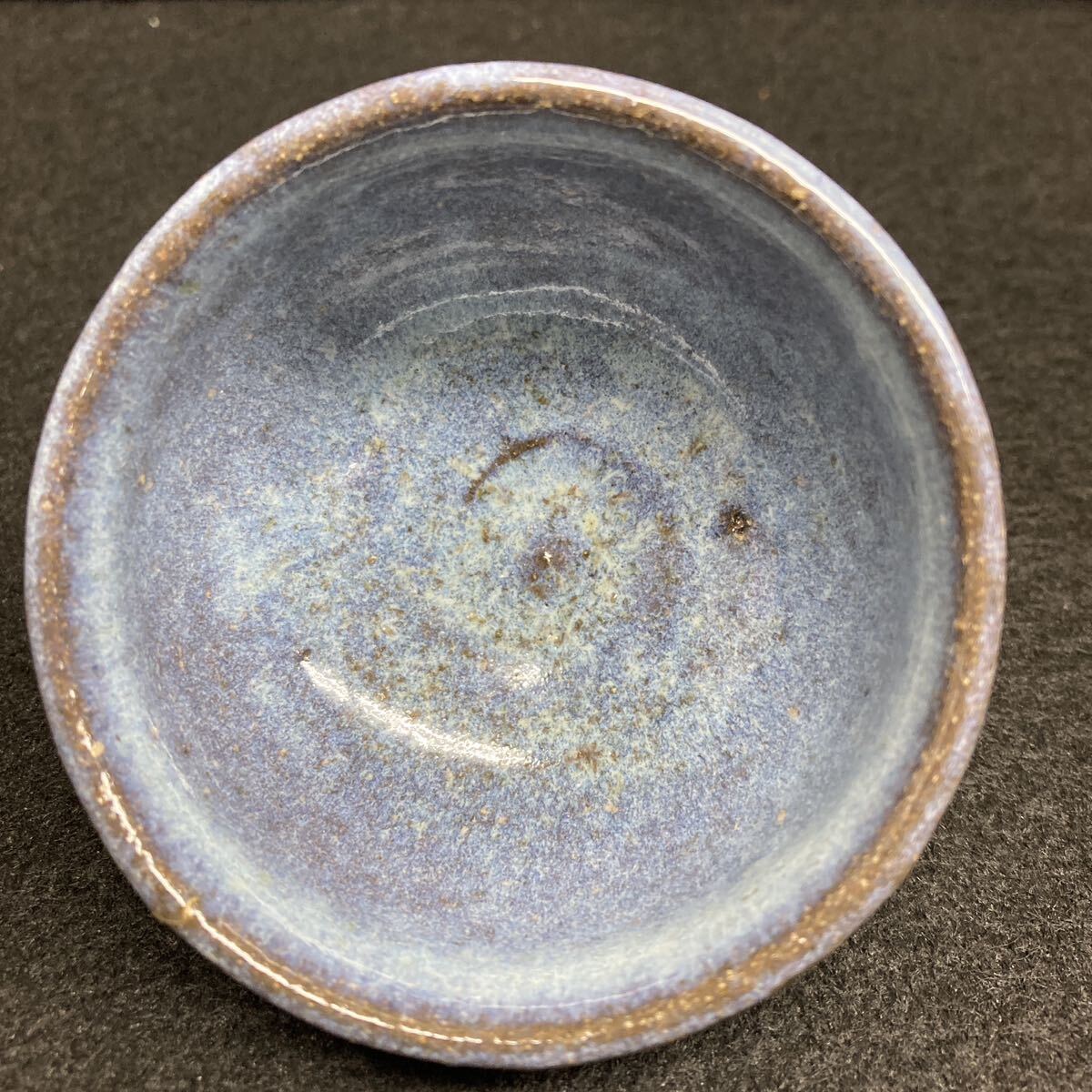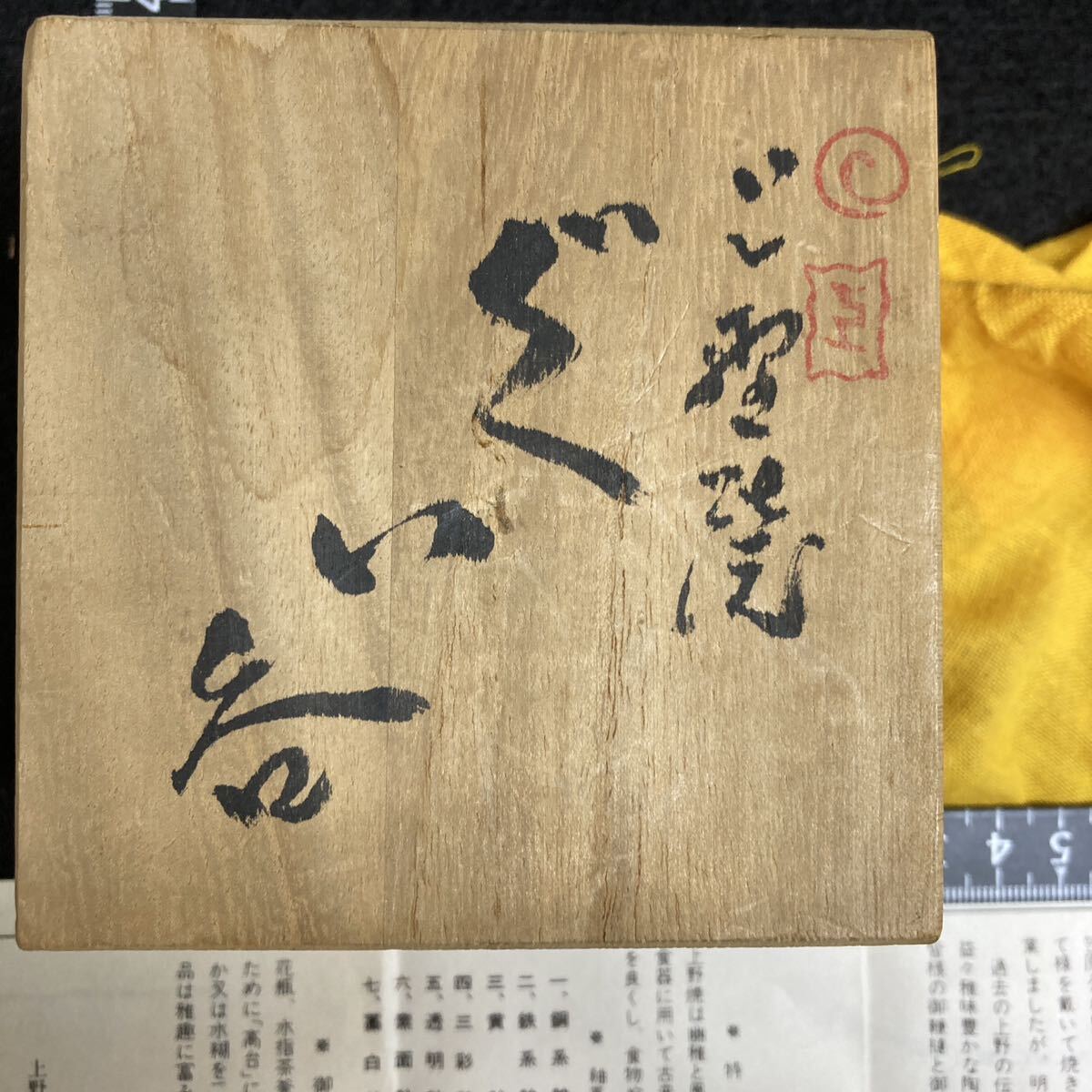 上野焼き 高鶴夏山作 総青ぐい呑共箱、共布、陶歴付き アンテーク