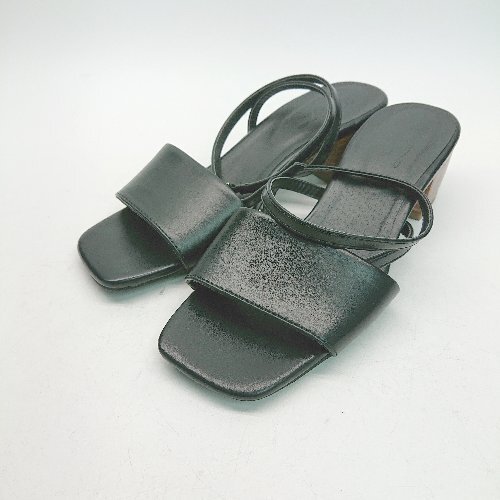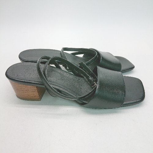 ◇ LeLien スクエアトゥ チャンキーヒール 大人 フェミニン サンダル サイズL ブラック レディース メンズ E