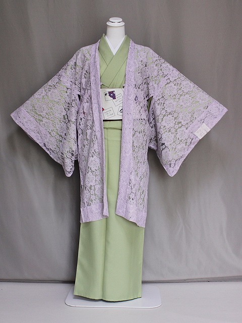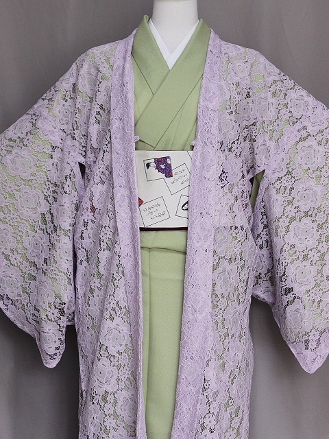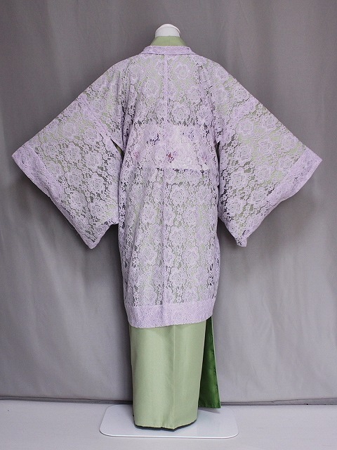 | H2500-04 福野羽 やわらかでしなやかなレ-ス生地にてお仕立ていたしましたレ-ス長羽織です。 柔らかな綿が入った素材なので着物になじんで着用することができます。 和装だけでなく洋装時に冷暖房対策として着用されてもオシャレだと思います。 透け感の美しいこちらの羽織で着物姿を楽しんでみてはいかがでしょうか。 羽織紐は付いておりません。 お色はうすい藤色系の花柄模様です。◎ | ||||||||||