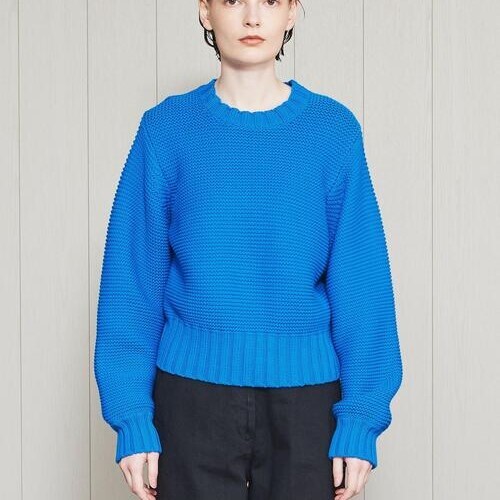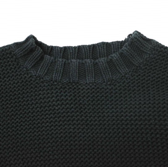 ローゲージのコットンナイロン糸で編み立てたクルーネックニット。
