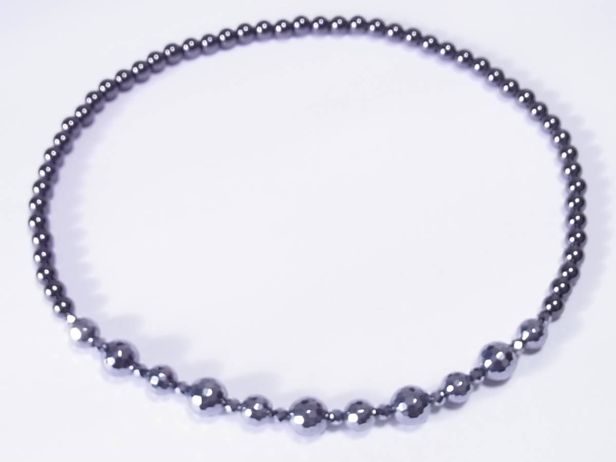 高純度テラヘルツ、磁気ヘマタイトを使ったストレッチ・ネックレス(伸縮)です | |||