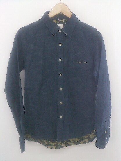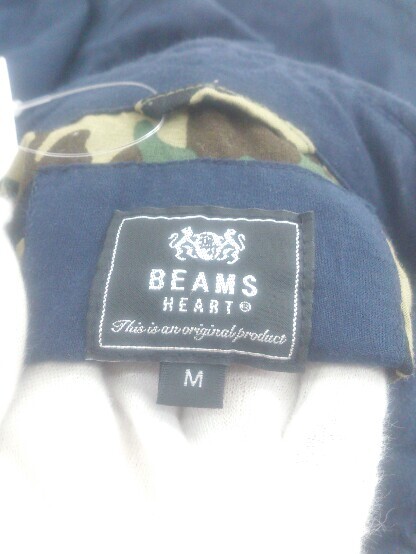 ◇ BEAMS HEART ビームスハート ボタンダウン BD 長袖 シャツ サイズM ネイビー カーキ系 マルチ メンズ P