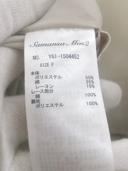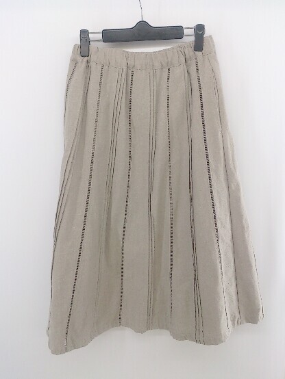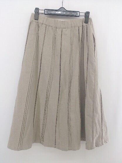 ◇ Samansa Mos2 ウエストゴム ピンタック 透かし編み 膝下丈 Aライン スカート サイズF ベージュ系 レディース E