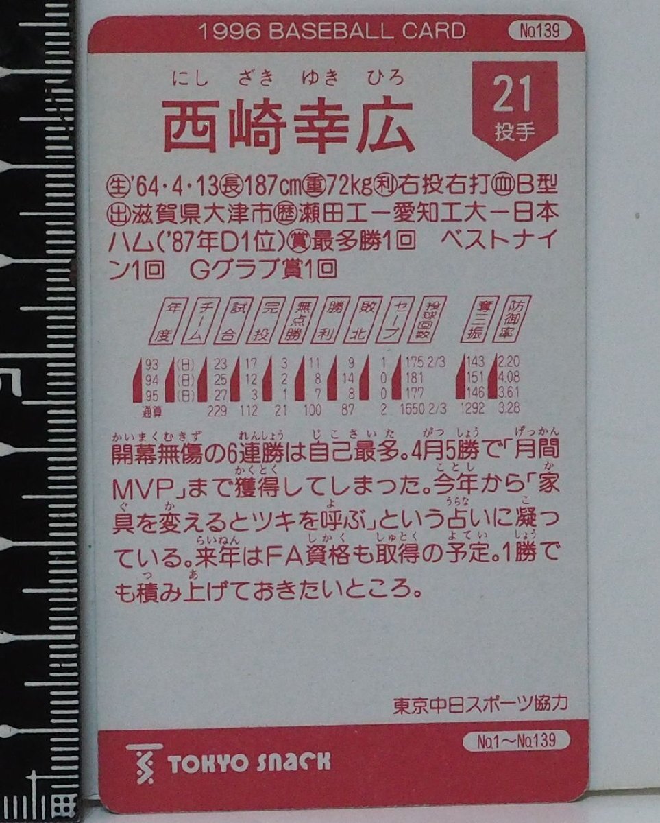 96年カルビー東京スナック プロ野球カードNo.139 レアブロック【西崎 幸広 投手 日本ハ ムファイターズ】平成8年1996年 当時物Calbeeおまけ