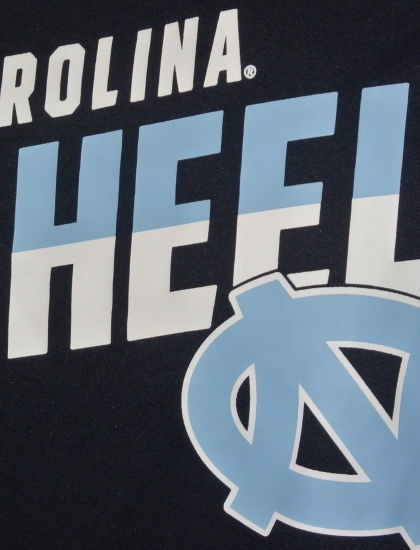 光沢のあるブラックの生地(ポリエステル)に、ブルー&ホワイトの2トーンで、チーム名「TAR HEELS」が入れられております。