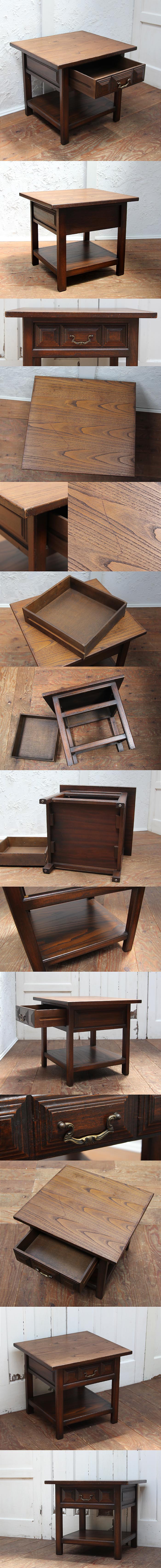 イギリス アンティーク調 引き出し付きローテーブル 木製 コーヒーテーブル 家具「ドロワー付」P-449