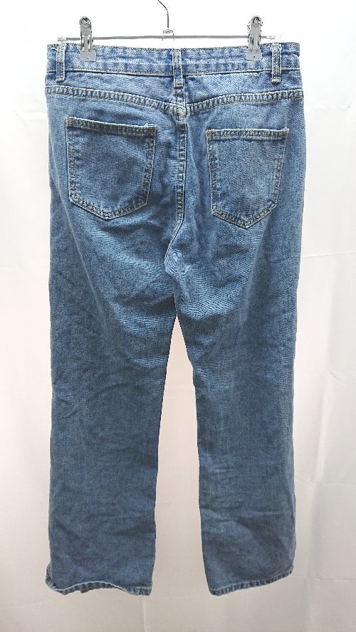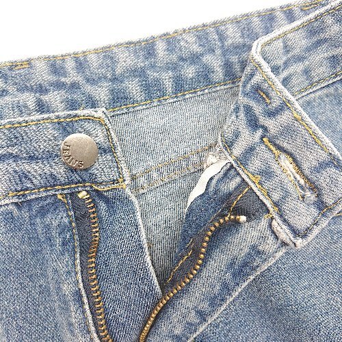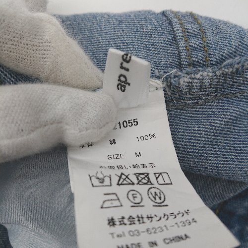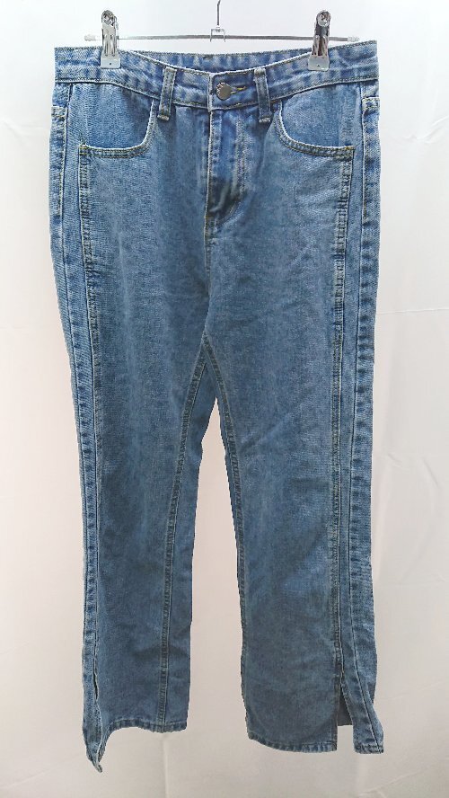 ◇ ap retro アプレトロ サイドスリット 無地 ウォッシュ加工 デニムパンツ サイズM インディゴ レディース E