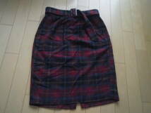即決 ◆送料無料【タイトスカート M】チェック★ウエスト半分ゴム ●くすみ赤 chocol raffine robe [ショコラフィネ ローブ] ベルト付き