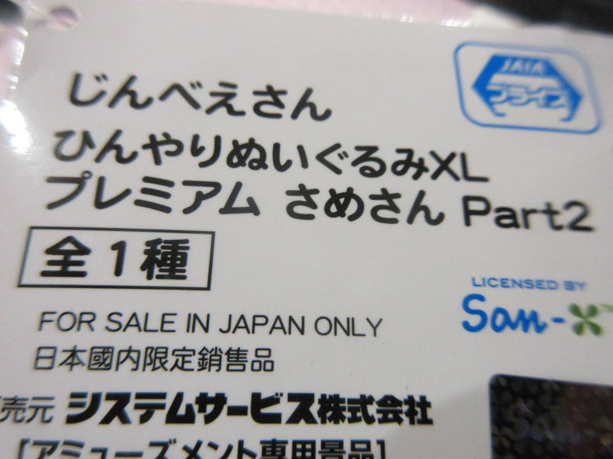 じんべえさん ひんやり ぬいぐるみ XL プレミアム さめさん Part2」 です。