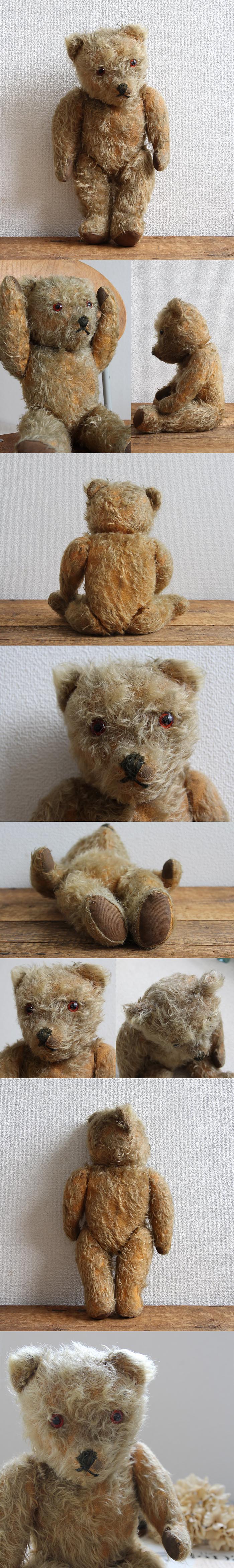 イギリス アンティーク テディベア くまのぬいぐるみ インテリア雑貨「全長約42cm」V-612