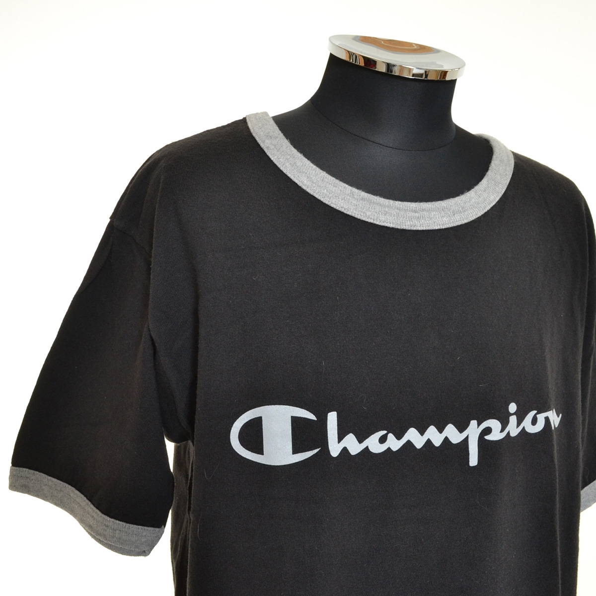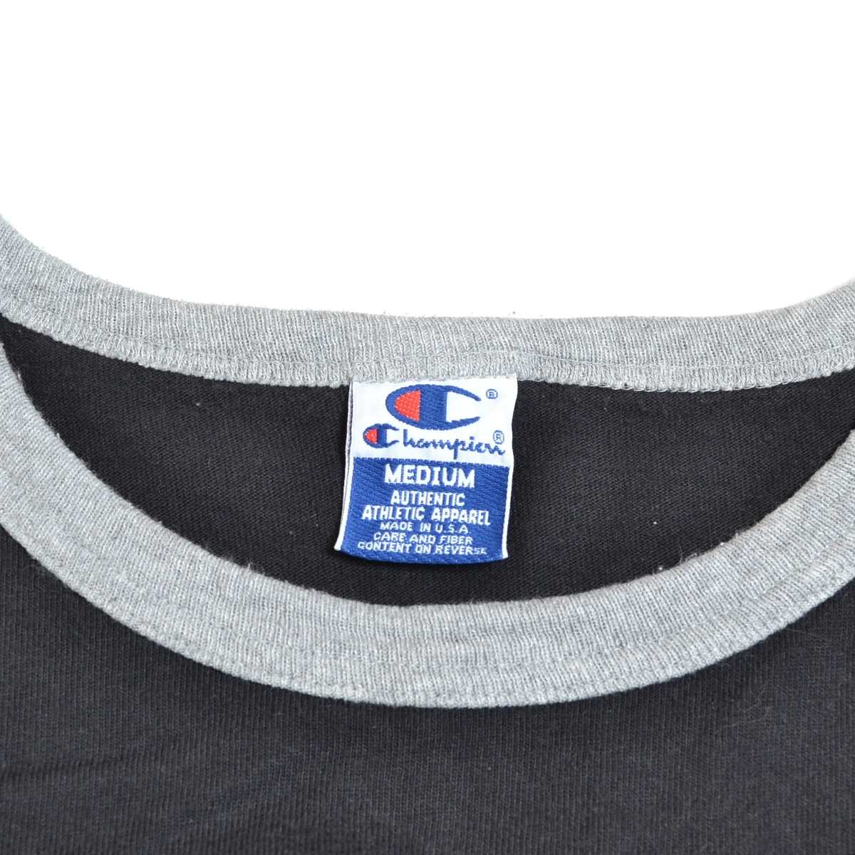 ●475637 Champion チャンピオン ●リンガーTシャツ 半袖 90s USA製 青刺繍タグ ヴィンテージ サイズM メンズ ブラック