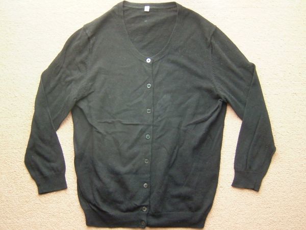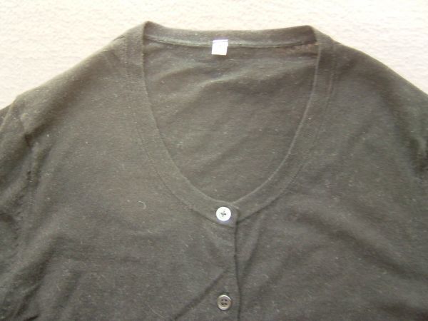 無印良品 丸襟コットンカーディガン 黒 S 綿100% 約8-9分袖カーディガン