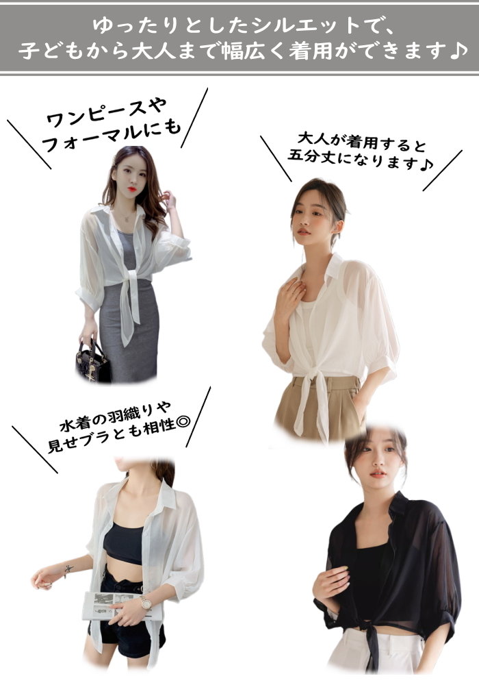 ゆったりシルエットで、130cm-160cm対応(大人が着用すると五分袖、ショート丈デザインになります。)