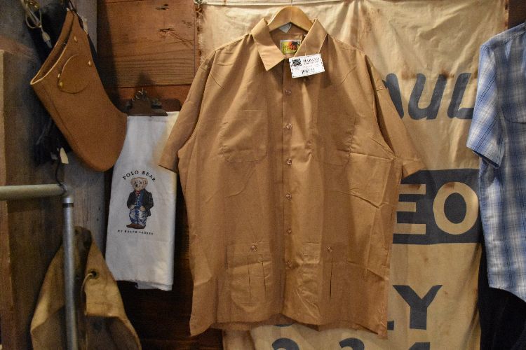 フラッシャー付きデッドストック品90sビンテージGUAYABERA半袖キューバシャツXLベージュ系コットンポリ未使用品アメカジストリートn23804